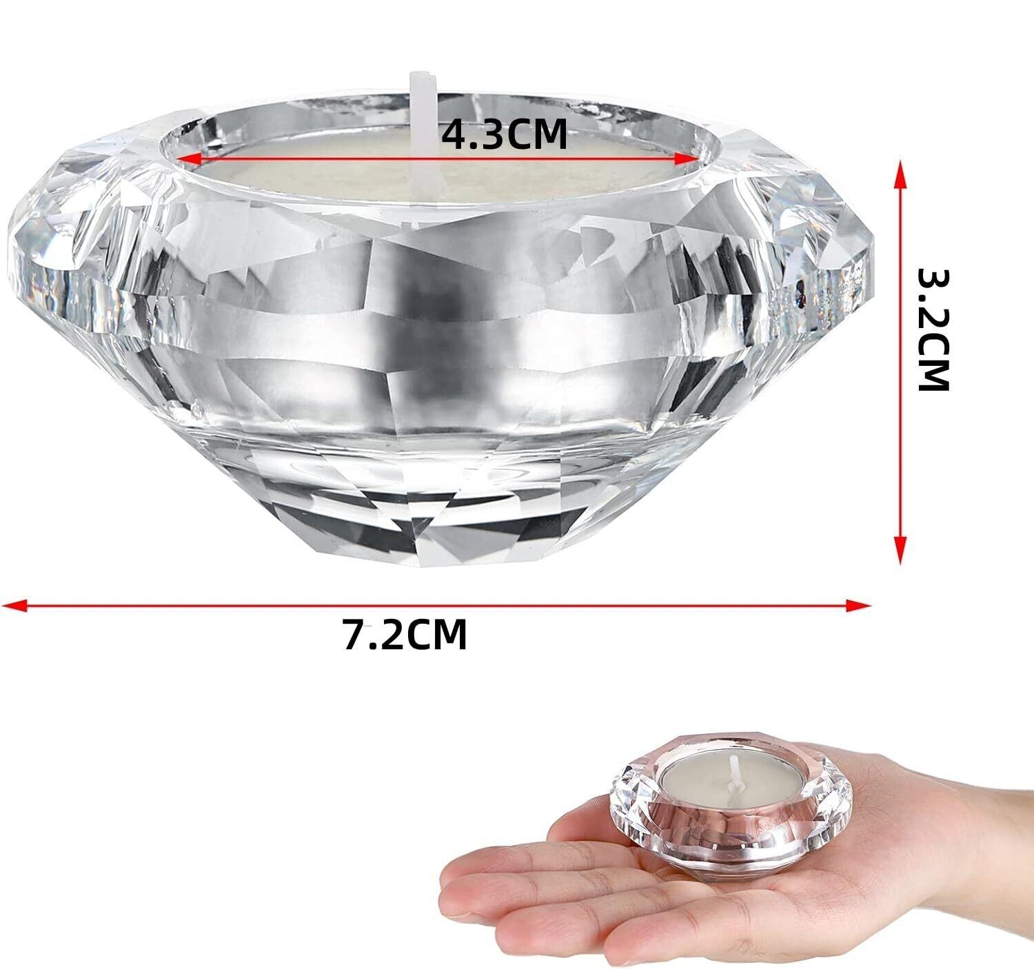 プレミアムクリスタル素材で作られたこのダイヤモンドティーライトキャンドルホルダーセットは、耐久性があり、頑丈で、防水性があり、防塵性があり、お手入れが簡単で、損傷しにくく、小さなカラフルなビーズ、ジュエリー、または適切な装飾品を置くのにも使用できます