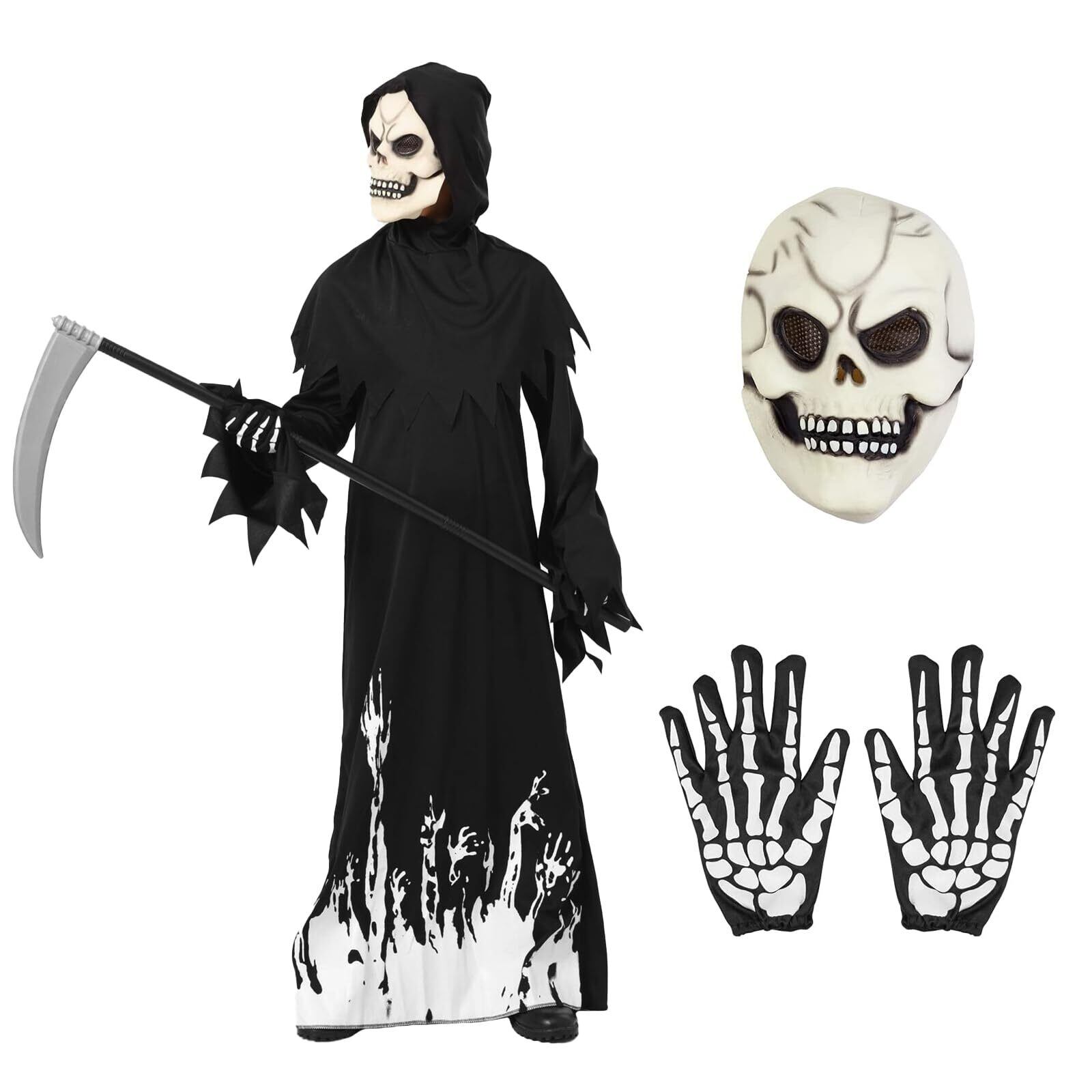 【新春セール】[LEISURE CLUB] 死神 コスプレ 子供 ハロウィン 仮装 死神 骸骨仮面 鎌付き コスチュームセット お化け 屋敷 衣装 ホラー風 怖い キッズ 男女兼用 小学生 肝試し ハロウィン 学園祭 演出服 文化祭 パーティー | asaRulu0511