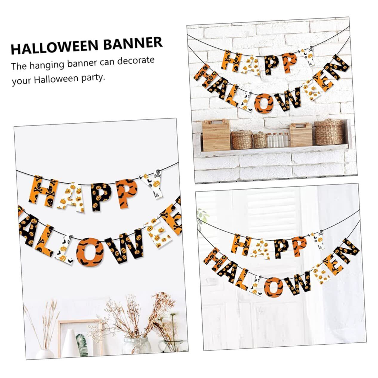 ハロウィーンのテーマのバナー - 持ち運びに便利で使いやすい、このパーティーデコレーションキットはシンプルなデザインのアルファベットバナーです。