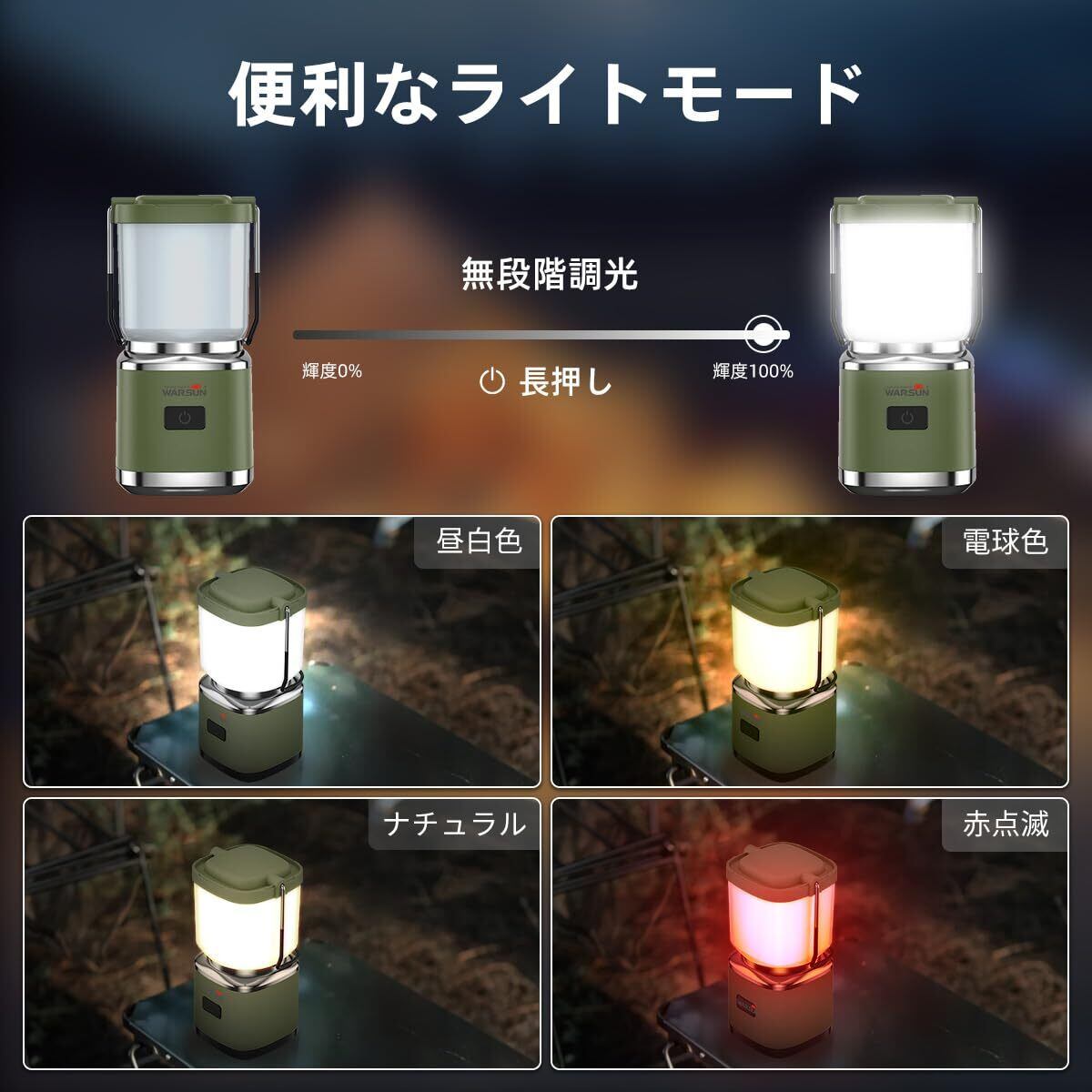 【WARSUN Y61】充電式 超軽量LEDランタン 無段階調光・4色切替 携帯便利 IP45防水 アウトドア・キャンプ・防災用