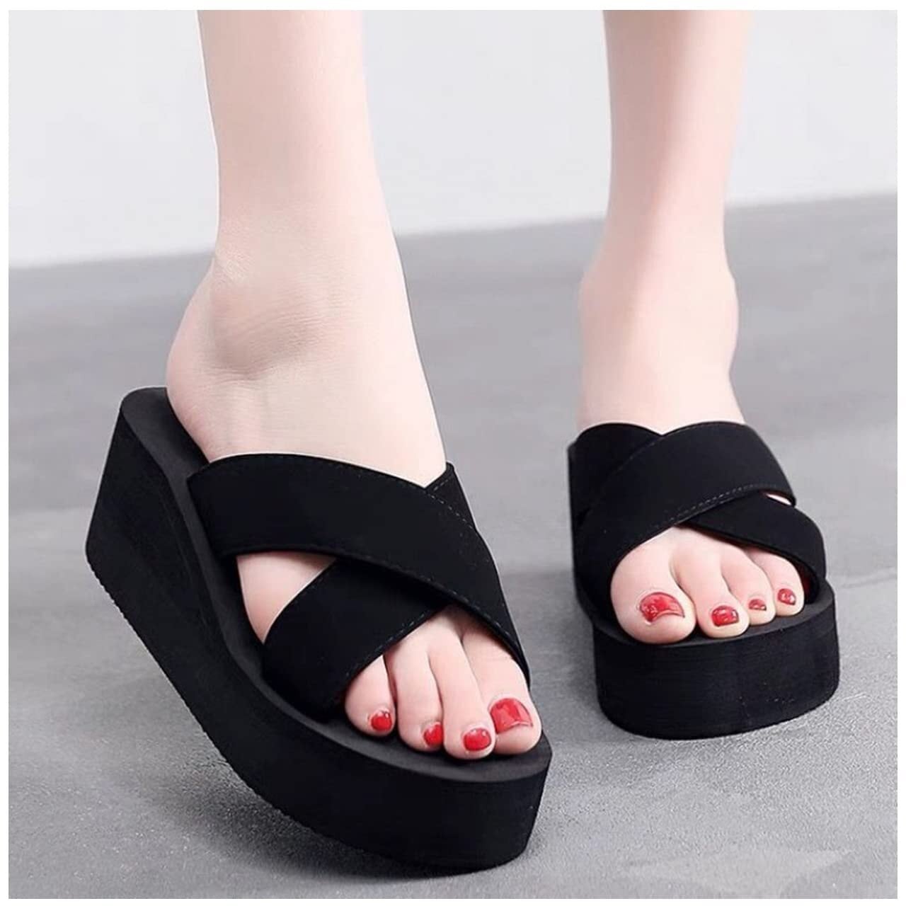 [G-tiamo] [ジーティアモ] 厚底 サンダル レディース クロス ミュール ソール 美脚 ヒール オフィス 黒 ビーチ シンプル 軽 さんだる
