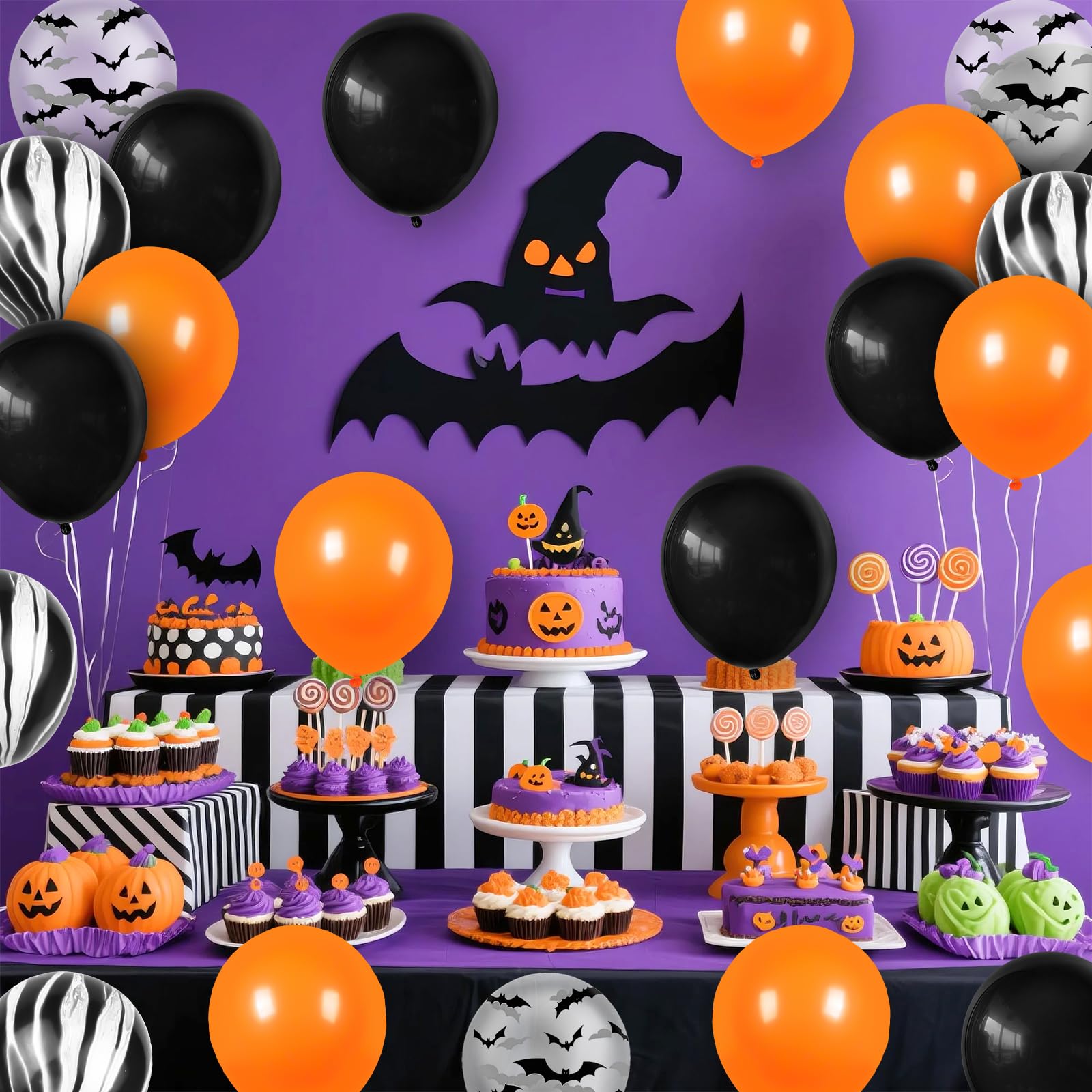 【特価セール】BTZO ハロウィン バルーン 風船 50個入 10インチ/12インチ 飾り付け HALLOWEEN パーティー イベント 学園祭 文化祭 お化け屋敷 店舗装飾 写真背景 お祭り ブラック オレンジ コウモリ柄 メノウ柄 ゴム風船 4色アソート | asaRulu0511