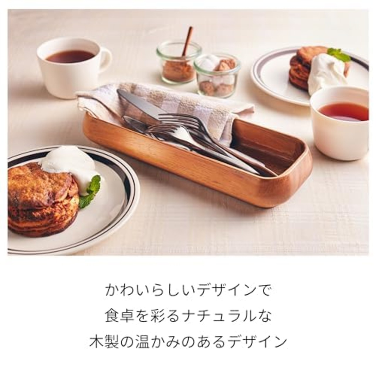 温かみのある独自の風合いが魅力の木製カトラリーケース。ナチュラルなインテリアや、北欧風のスタイルにもよく馴染みます。