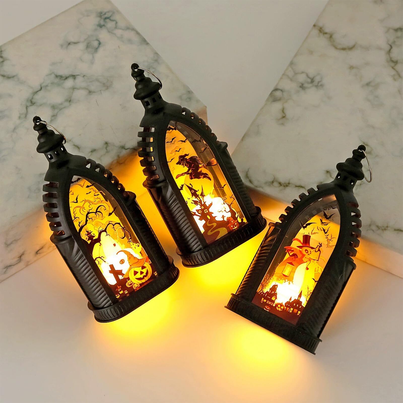 ハロウィンにぴったり: ハロウィン パンプキン ランプには、魔女、カボチャ、骸骨3点セット。手持ちでも、インテリアの卓上飾りとしてもお使いいただけます。