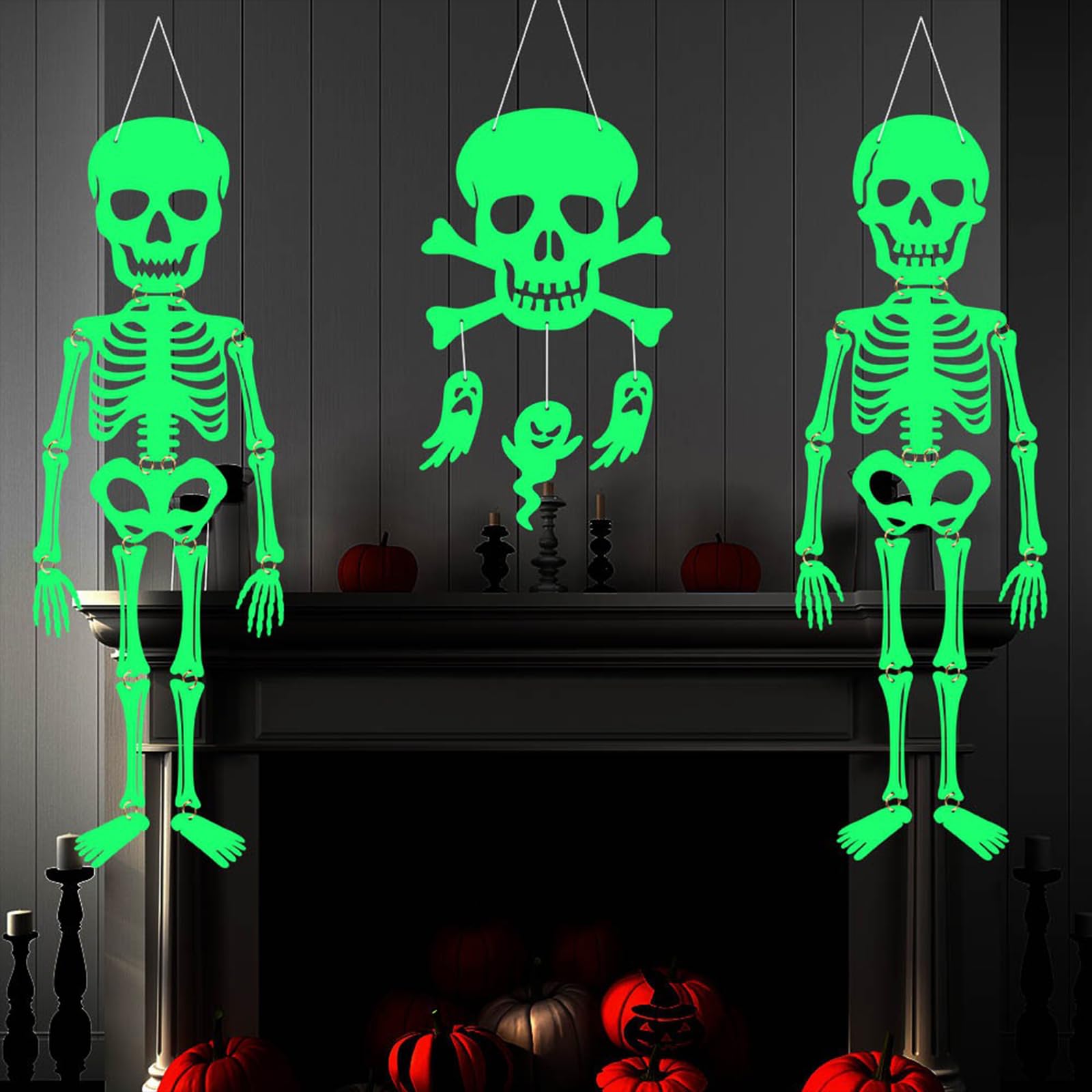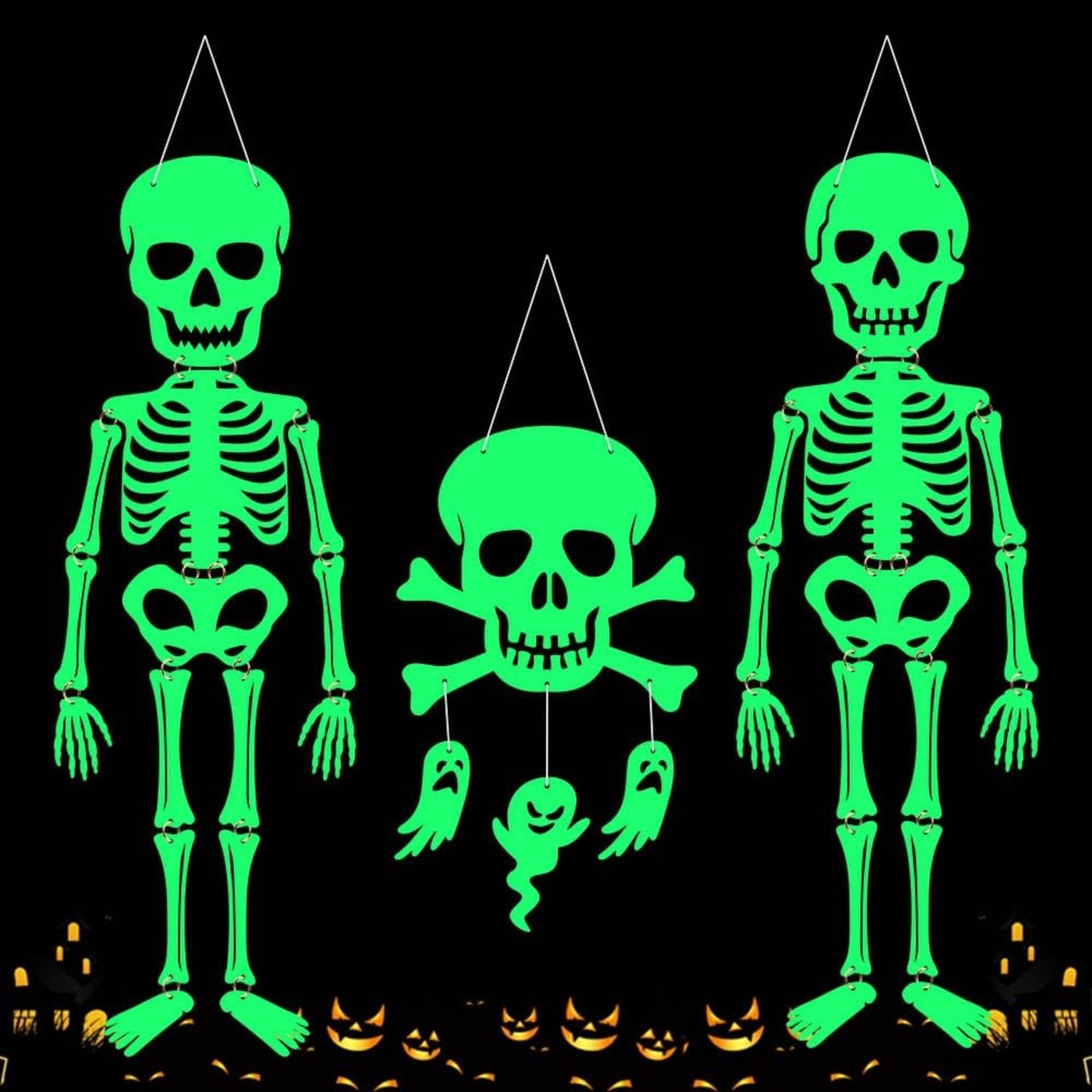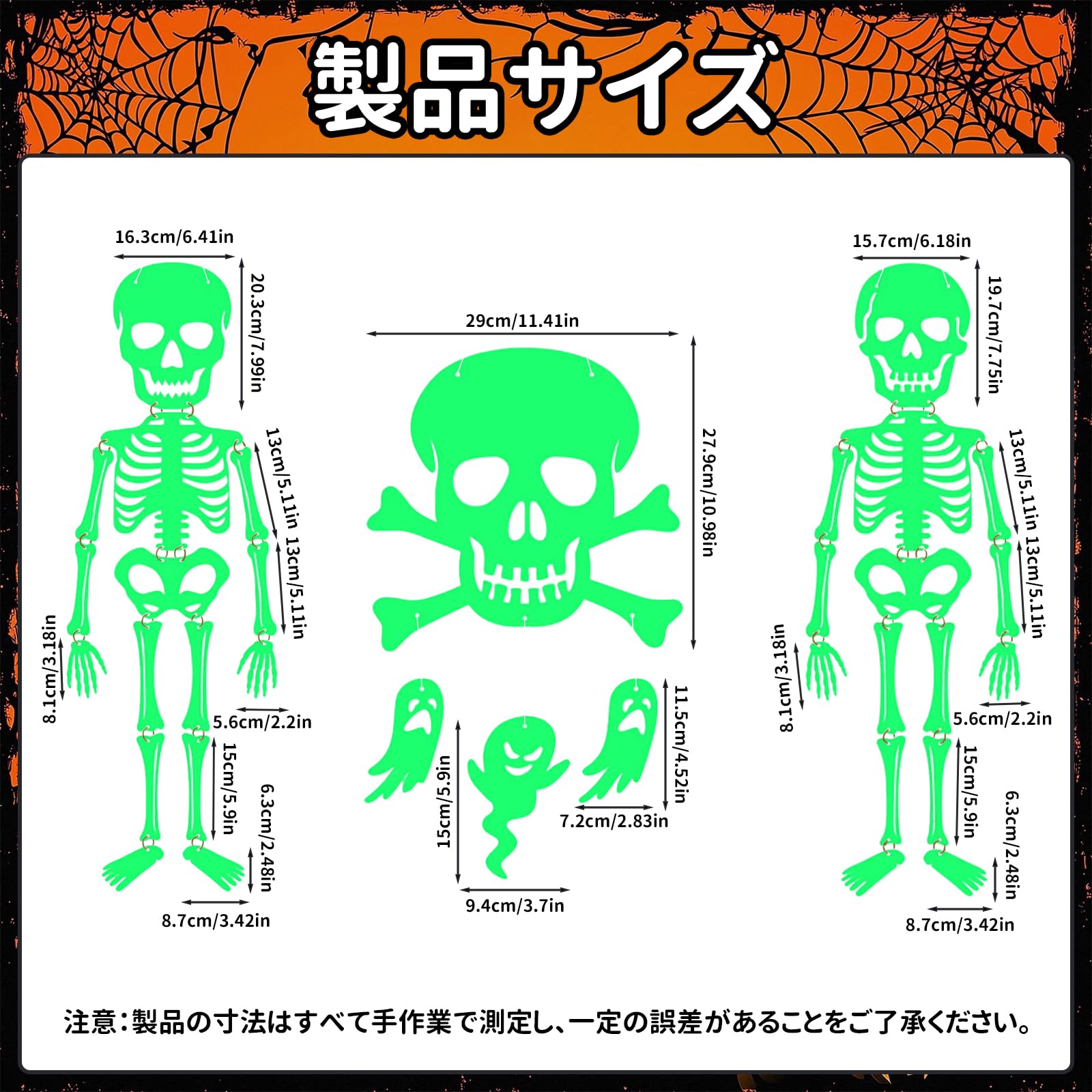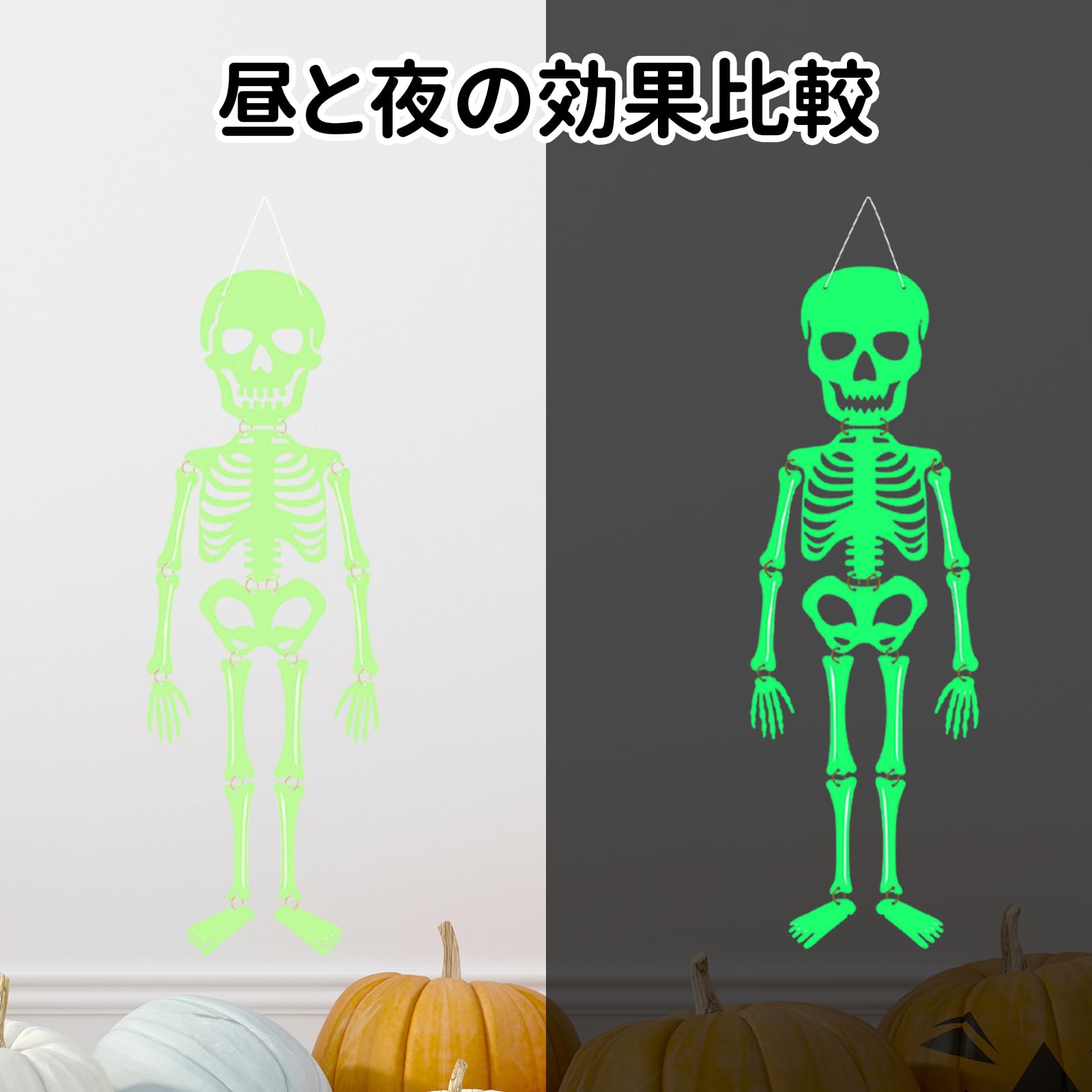 LEISURE CLUB ハロウィン 飾り 吊り下げ 骸骨 夜光 大きい 3点セット ハロウィン装飾 玄関 壁飾り 紙製 インテリ 窓 屋外 店舗 文化祭 学園祭 パーティー デコレーション 小物 道具 (夜光ガイコツ(3点セット))