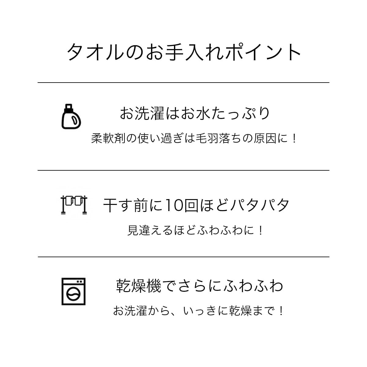 【やわらかい/ 軽い/ 風合い長持ち】ボリュームがあるのに驚くほどやわらか。使い続けても風合い長持ちなところもポイントです。【抜群の吸水力】素早く、たっぷり吸収。お風呂上がりのヘアドライの時短にもおすすめです。【優れた速乾性】乾きやすいため、梅雨や花粉シーズンはもちろん、乾きにくい冬の部屋干しにぴったり。