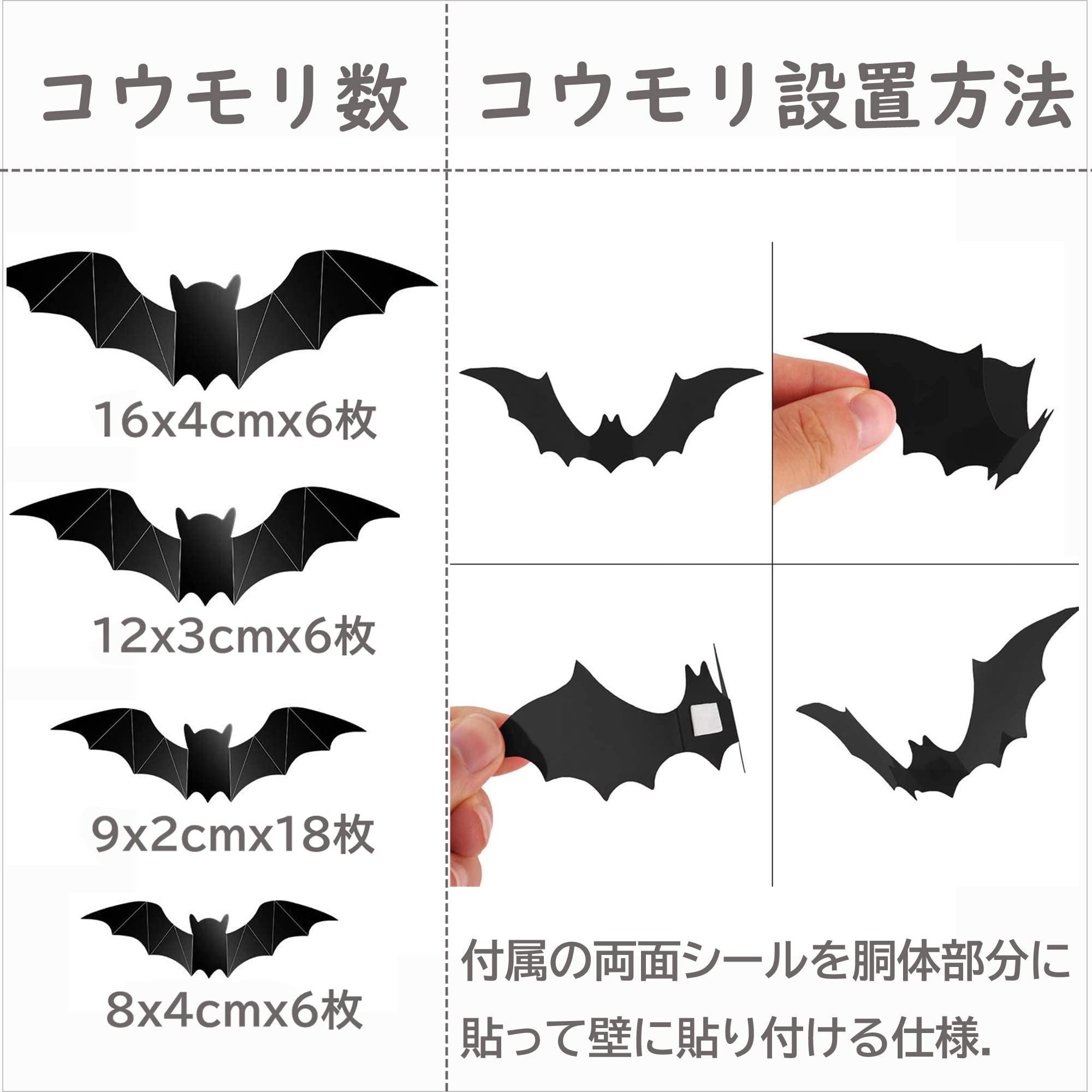 ハロウィーンの必要性:ハロウィンの時室内、商店、ウィンドウ展示、ガーデンなどの場所では、3Dバットとテーブルクロスを使用して装飾すると、クールで怖い祭りの雰囲気を作り出す。ハロウィンの夜を盛り上げて行きましょう。