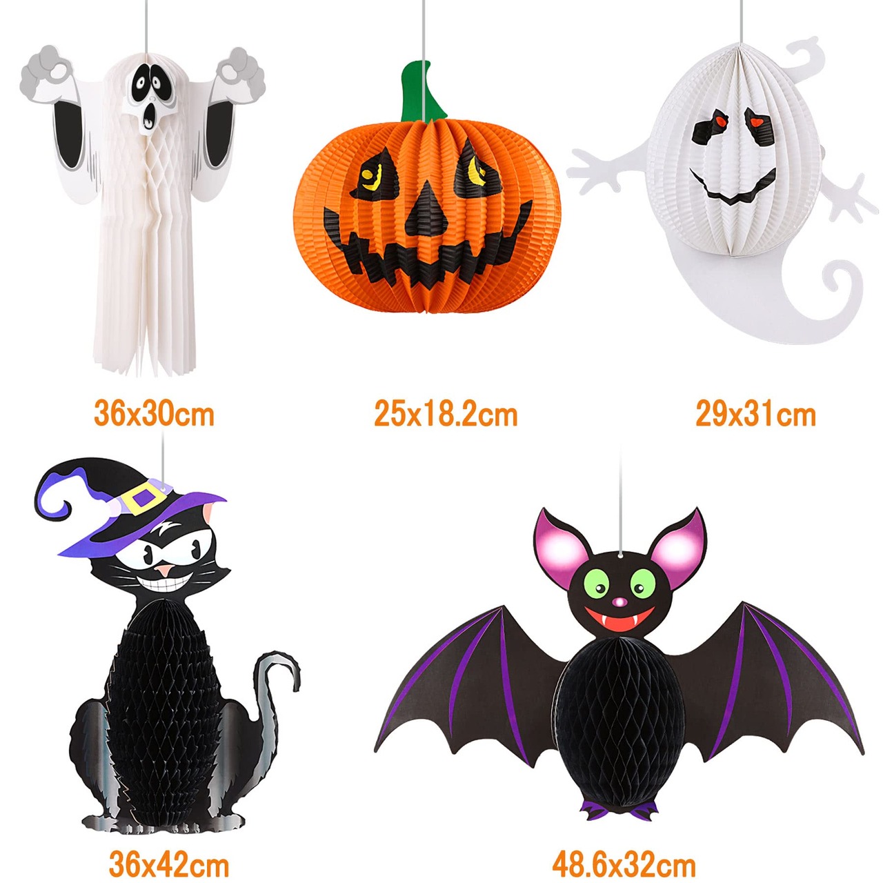 【デザイン】これらのハロウィン飾りは立体型にデザインされて、天井や壁に吊り下げれば、ハロウィンムードが一気に盛り上がります。また、折りたたみ式でスペースをあまり取らなくて収納にも便利です。