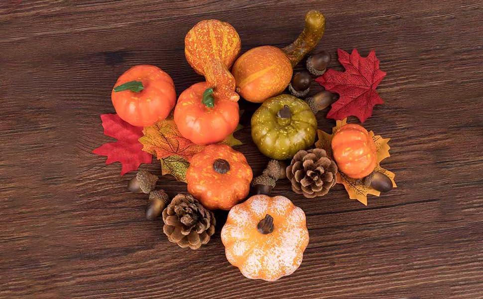 【DIYの楽しみ】あなたのニーズに合わせて、カボチャセットを自由に飾ることができます。例えば、それらを組み合わせたり、皿に配置したり、クリスマスリースに使用したりすることができます。これにより、子供たちと一緒に自由にアレンジし、DIYの楽しみを存分に楽しむことができます。