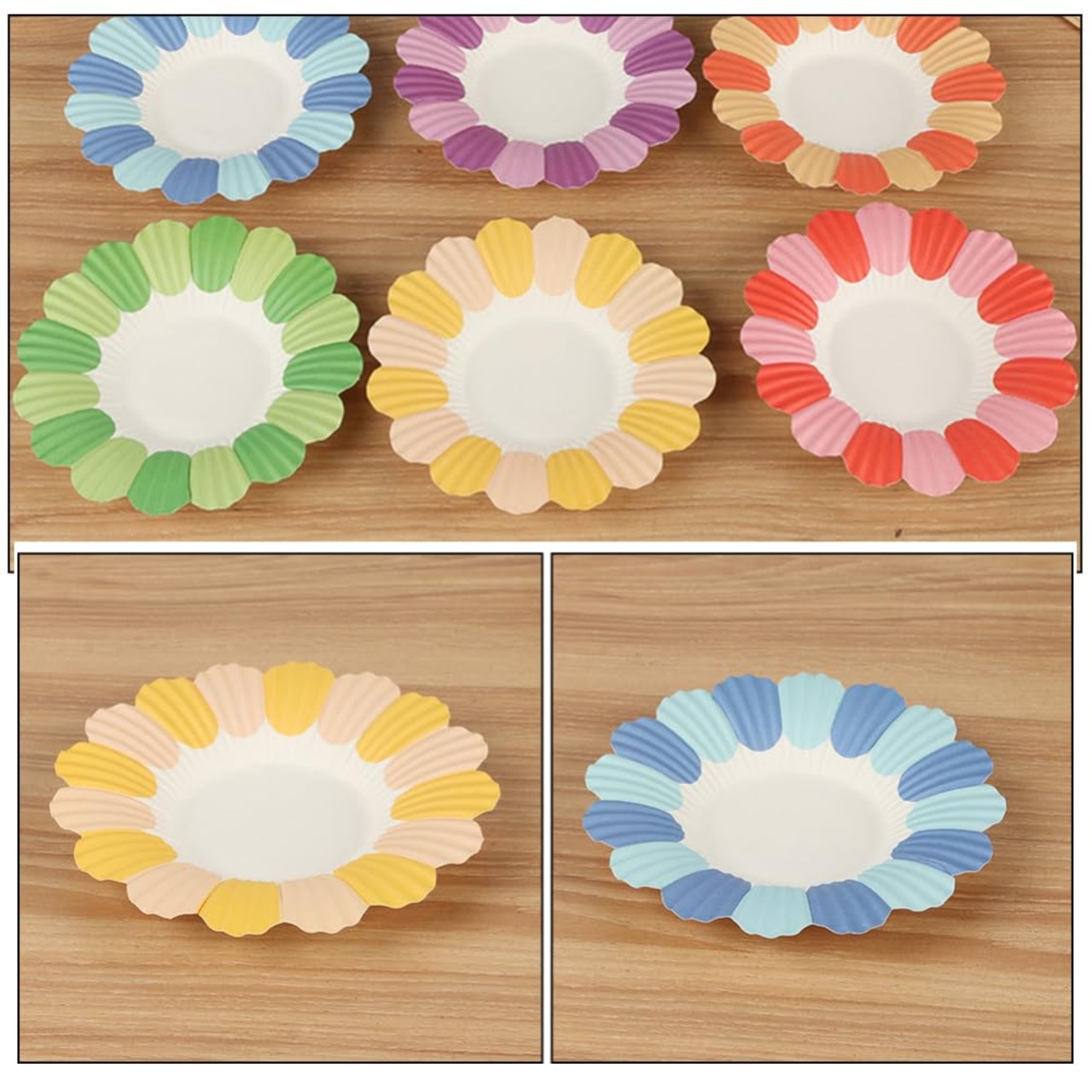 かわいいでおしゃれなデザインの使い捨て紙皿は、パーティーに楽しくて目を引くものです。花型紙皿(赤+黄+青 各50個)。