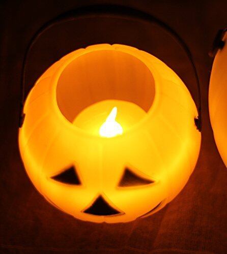 かぼちゃのカゴは大中小の3個セット。そのままアメやお菓子を入れても使えます。付属のLEDキャンドル(電池付)を入れてランプとしても使えて一石二鳥!