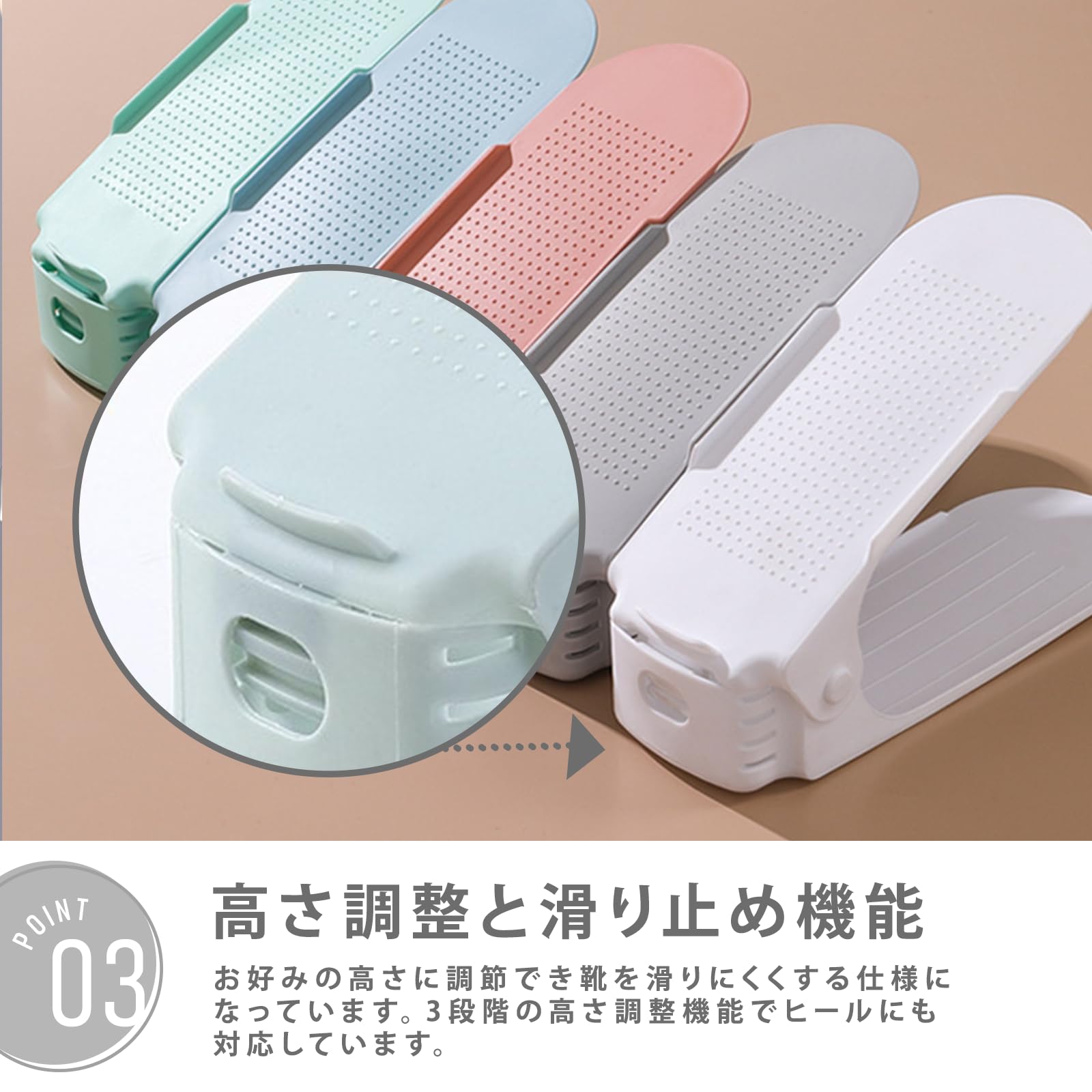 Asdays シューズホルダー 靴収納 くつホルダー 6個入 高さ調節可 省スペース 収納量2倍 (ホワイト)