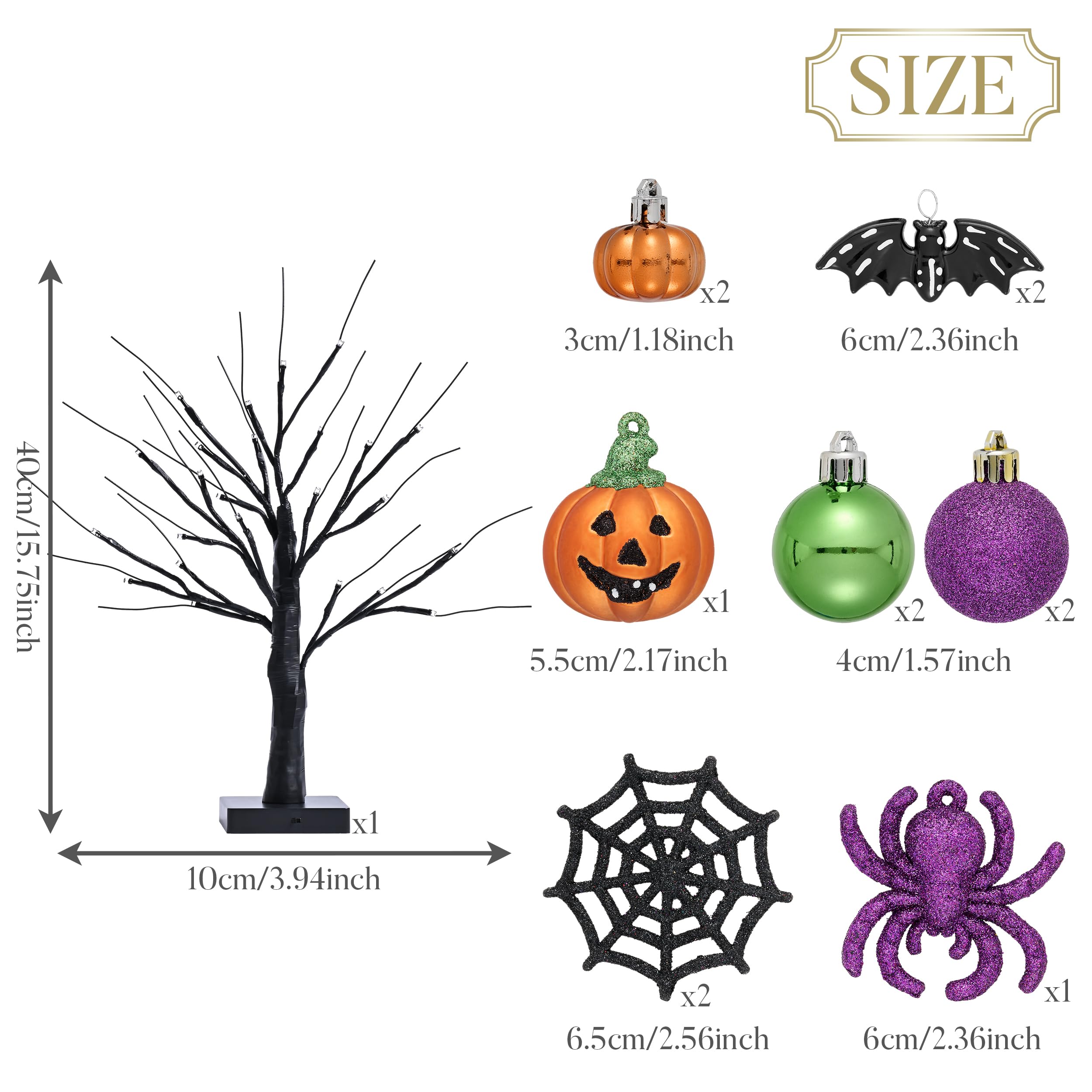 Valery Madelyn ハロウィン飾り ハロウィン ツリー 24個LEDライト付き 12個オーナメント付き 卓上 装飾 玄関 飾り ライト かぼちゃ クモの巣 コウモリ 高さ40cm