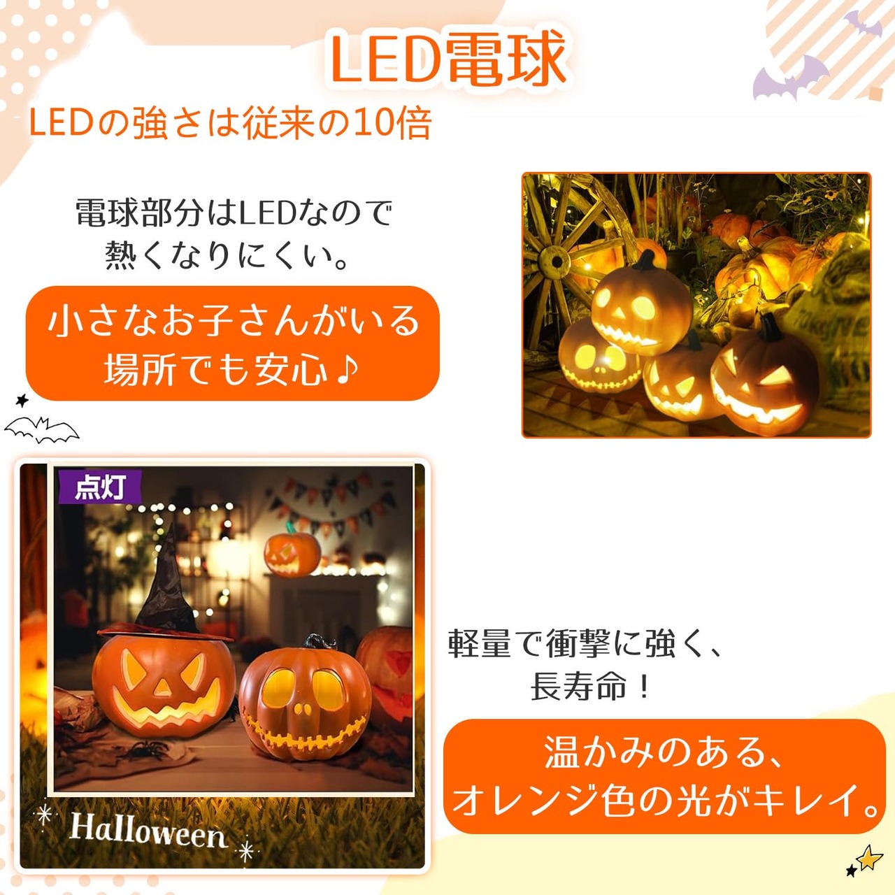 ハロウィン パンプキン 飾り カボチャ LEDライト ランタン 電池式 置物 オブジェ 飾り付け グッズ 装飾 屋外 室内 小道具