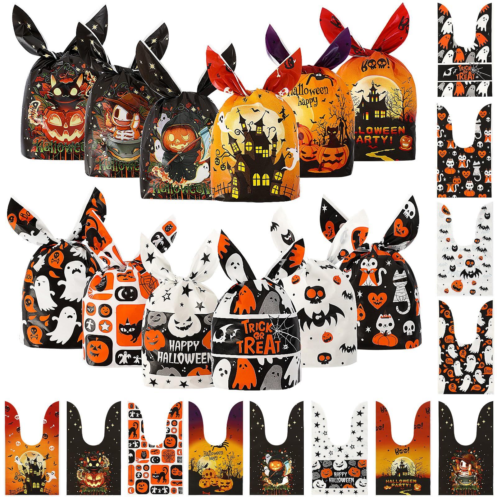 多様なデザイン:かぼちゃ、おばけ、ネコなどのクラシックなハロウィンキャラクターと、ブラック、オレンジ、ホワイトなどのクラシックなハロウィンカラーを組み合わせて、雰囲気満点のハロウィン お菓子袋になります。開け口がうさぎ耳にデザインされて、締めると可愛く見えて、そのままに置いても目立ちやすいです