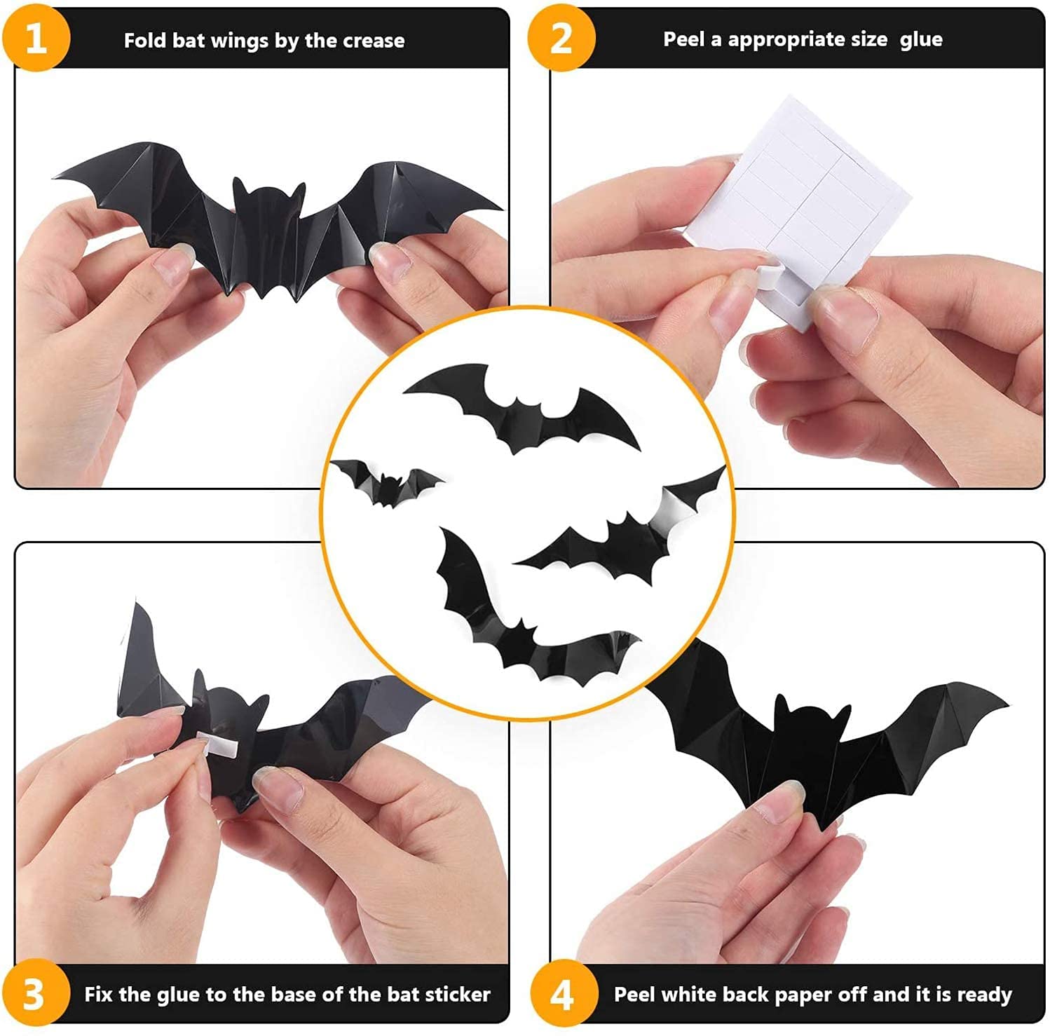 【3D設計 リアル】しっかりしたPVC材質、光沢がある、立体効果素敵な蝙蝠です。また3D立体の設計を採用され、翼が好きな角度を曲げます。胴体と羽根の間に折り線が入っており、自分の好きな角度に羽根を折ることができます。立体なデザインがすごくリアル感あり!一見でまるで本物のコウモリが停留しています。今年のハロウィンに大活躍です、簡単に使えて雰囲気に似合うですよ