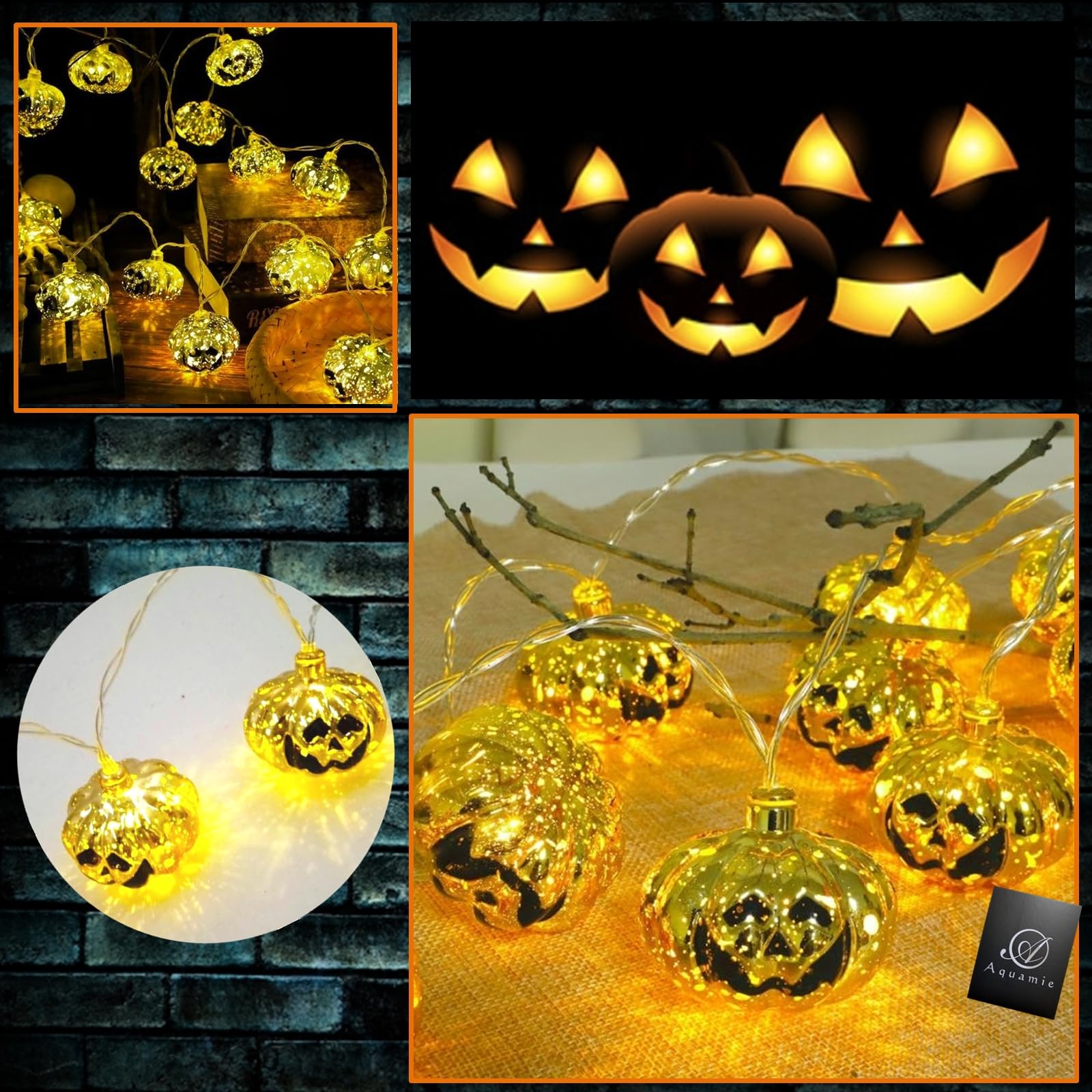 3メートルのコードに20個連なる、キュートでかわいいミニかぼちゃお化け飾り(縦4.5cm、幅6cm)が明るく点灯。お子様から大人まで楽しめる、ハロウィーン装飾です。