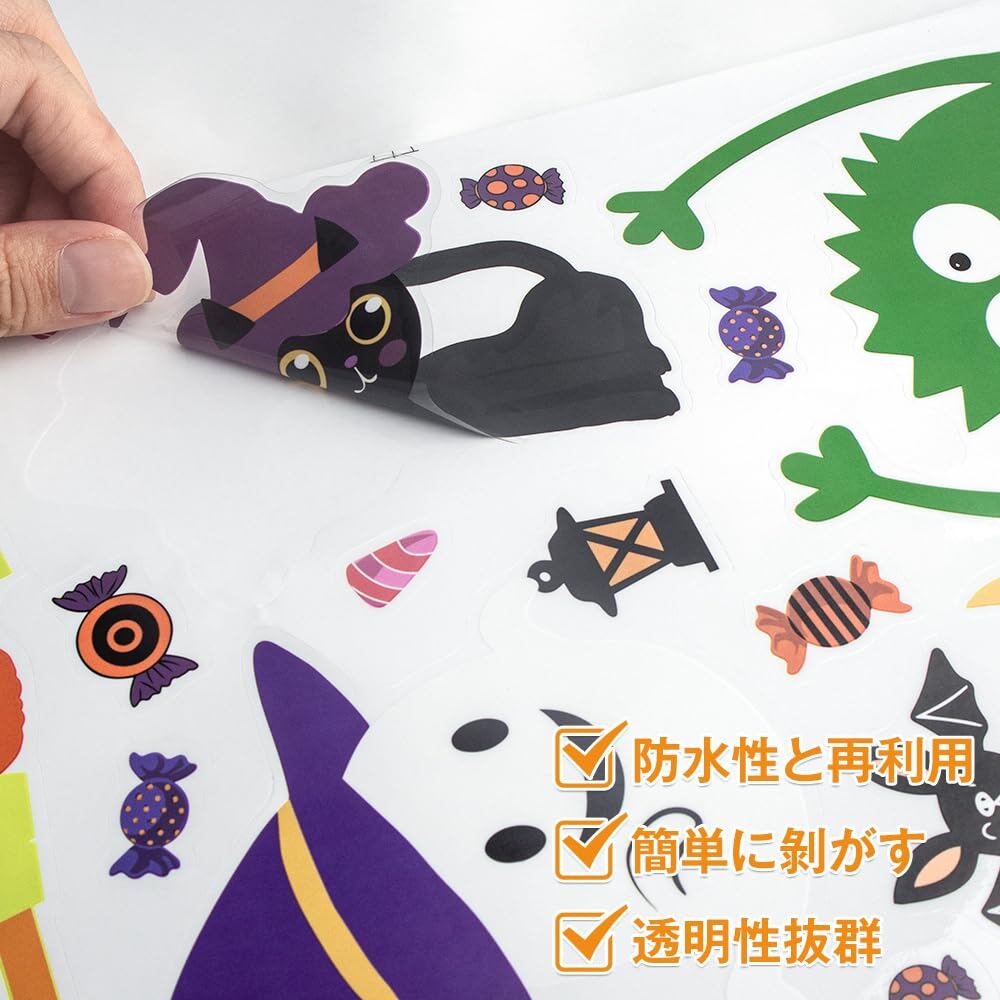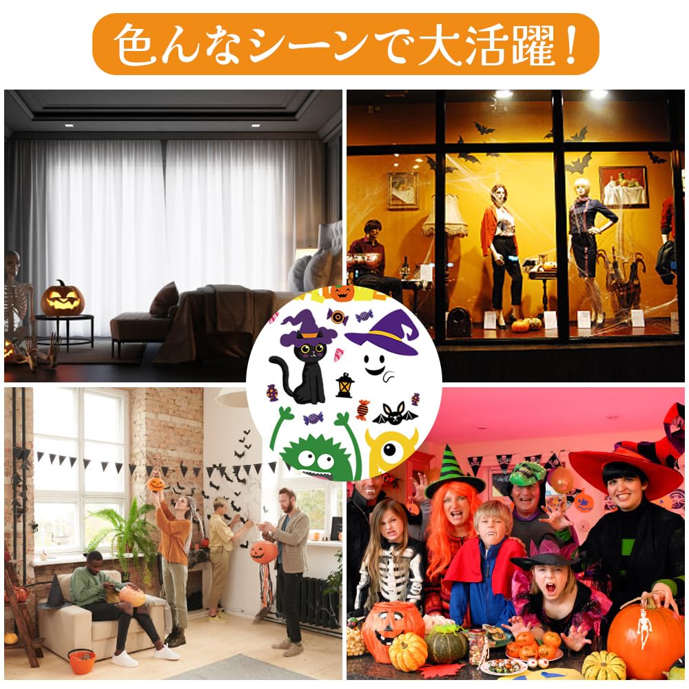 ✨【 わかりやすく手軽にハロウィン】カボチャ、フクロウ、モンスター、お化け、クモなど、みんなに愛されているハロウィンの要素で構成されています。台紙には、なんと139個ものハロウィン要素が散りばめられているため、それだけでハロウィンらしくて、とってもおしゃれです。飾り方によって、おしゃれな空間を演出できます。単調になりがちな壁や窓も、ハロウィンらしい特別な雰囲気に変わります。