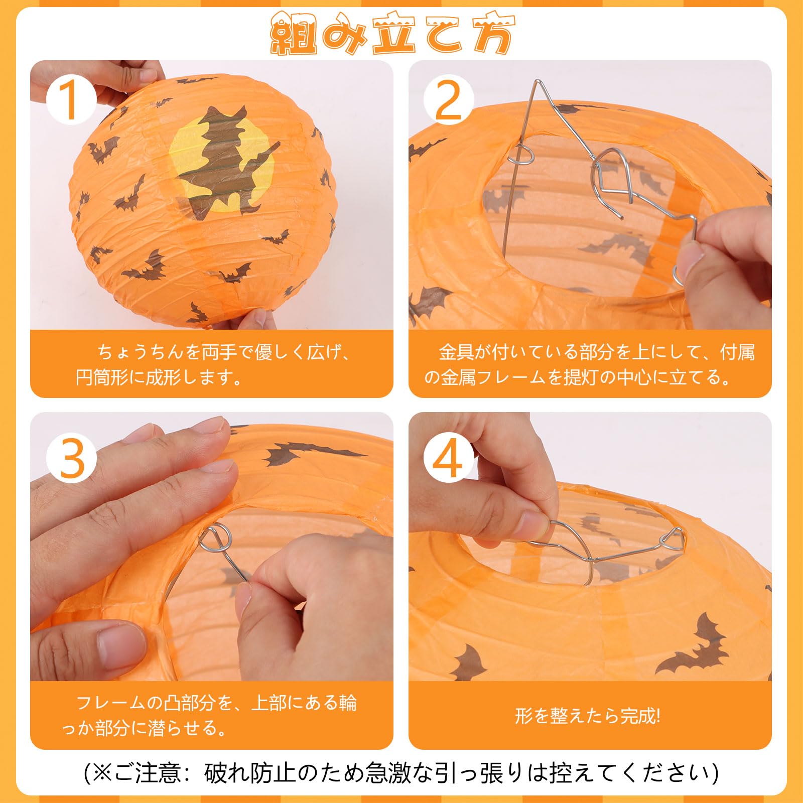 組み立て簡単:付属の鉄の輪を差し込むだけで完成。LED 豆電球(別売り)を提灯の中で吊り下げるのをオススメ!