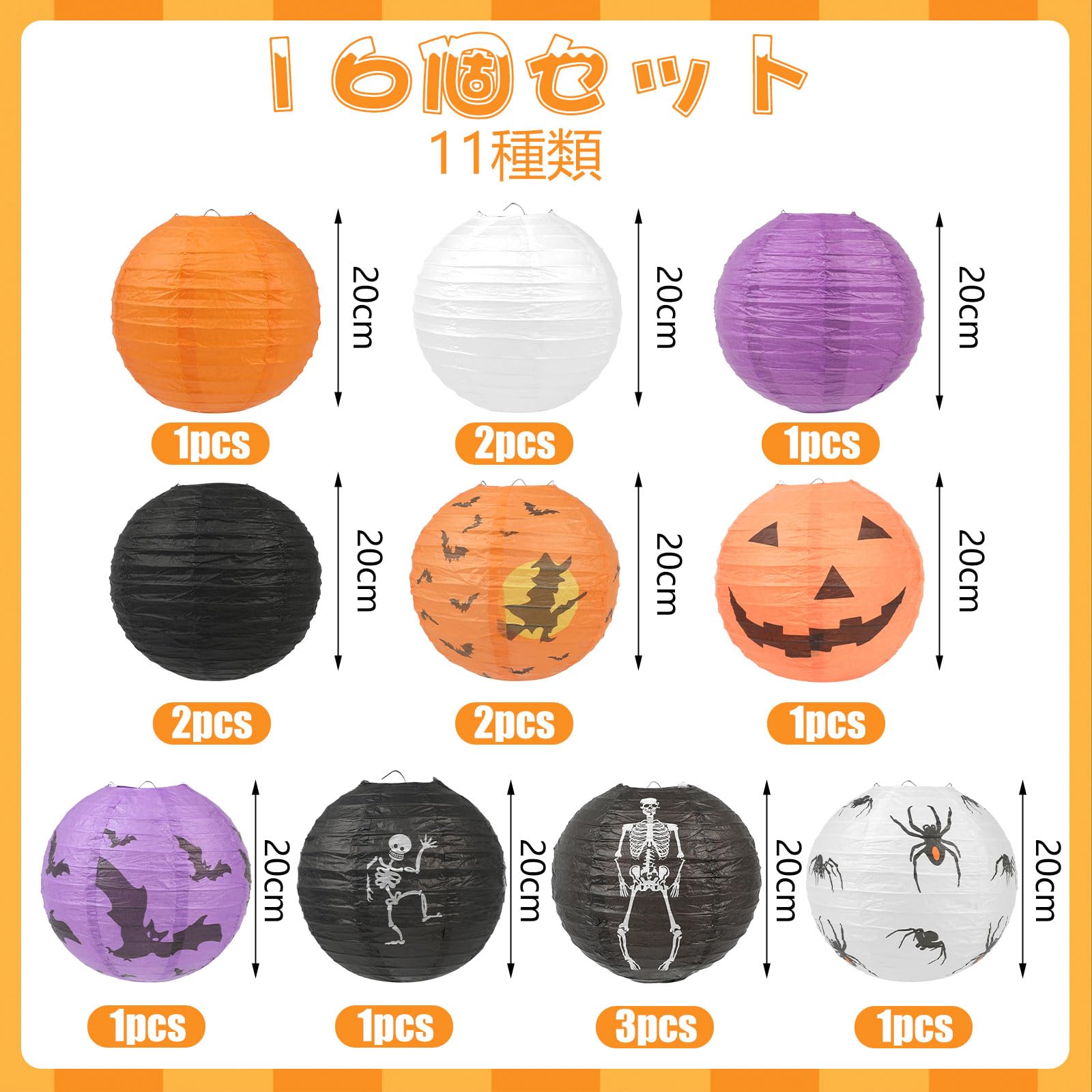 FINGOOO ハロウィン 飾り 提灯 16個 20cm 11種類 ランタン 装飾 飾り付け 紙ちょうちん カボチャ かぼちゃ 屋外 屋内 店舗 玄関 インテリア グッズ (A)