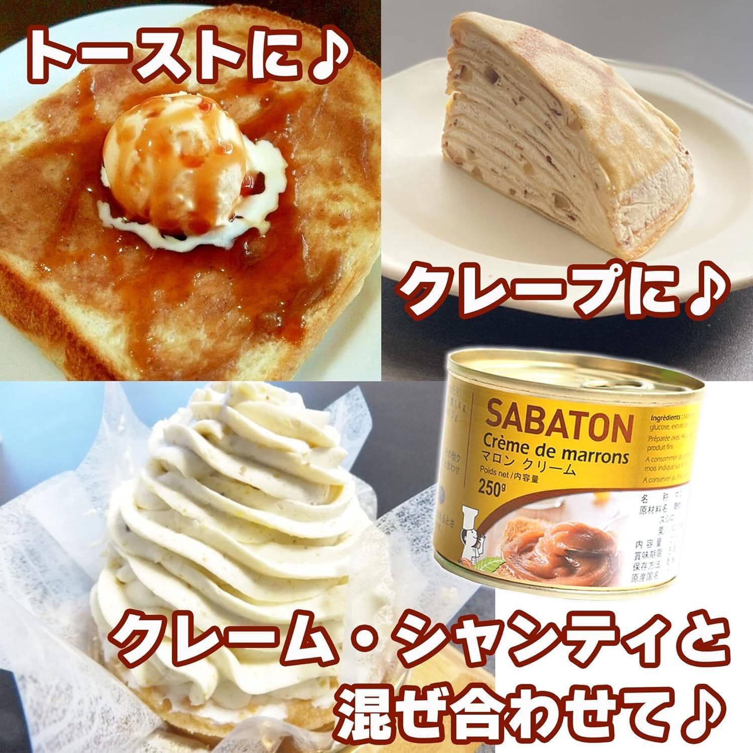 【在庫処分】サバトン マロンクリーム 缶入り 250g×3個セット 栗 モンブラン ムース 製菓材料 パン材料 オリジナルおしぼり付き