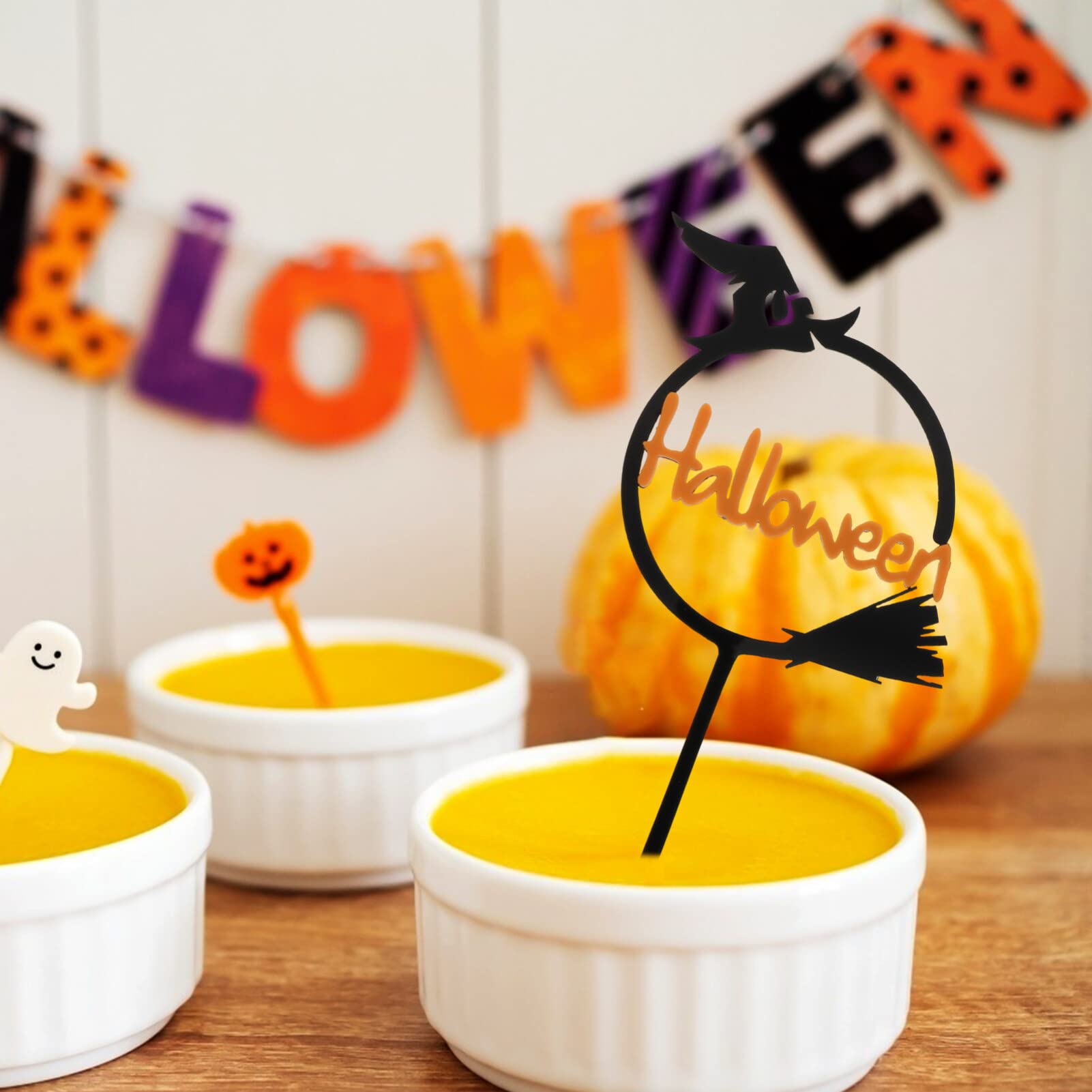 OUNONA ハロウィン ケーキトッパー ケーキ飾り 黒 アクリル 魔女形 英文字 20本 ハロウィン 飾り付け カード カップ 誕生日 カップ トッパー カップ ピック グッズ