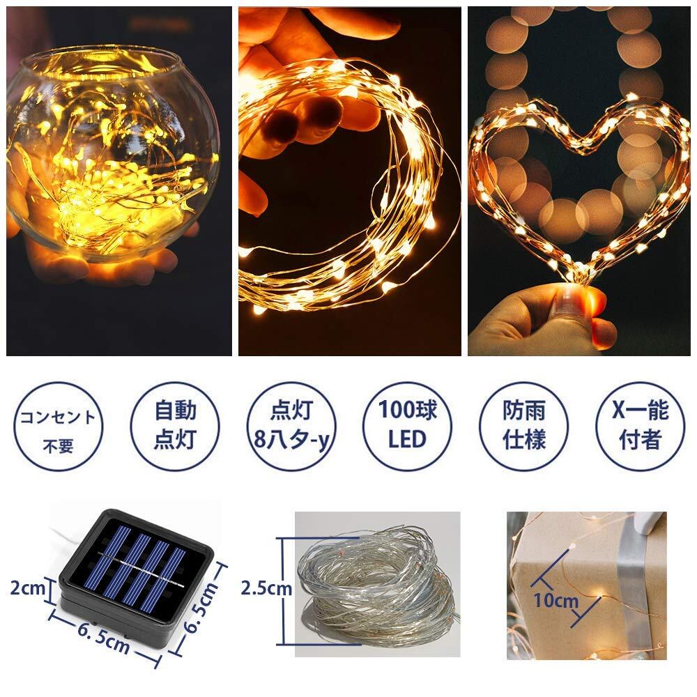 LEDイルミネーションライト ソーラー ストリングライト 100電球 10m 電飾 8モード 夜間自動点灯 キャンプ用 ガーランドライト IP65防水 飾り クリスマス/ハロウィン/パーティー/バレンタインデー/新年/祝日/結婚式/学園祭屋外/室外/室内/庭対応 ソーラーパネル 飾り