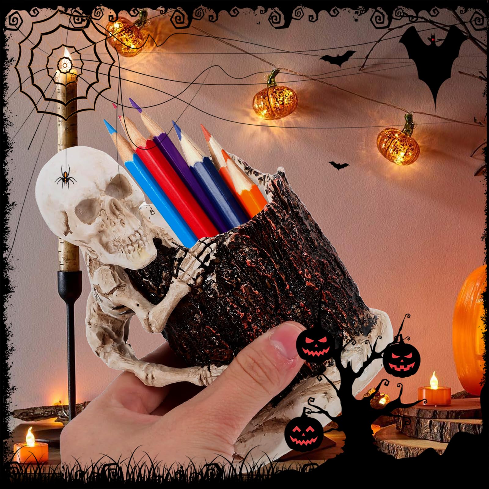 LEISURE CLUB ハロウィン 置物 ペン立て ペン差し 飾り 卓上 装飾 おしゃれ ハロウィン ガイコツのオブジェ 樹脂製 飾り付け (ガイコツ-B)