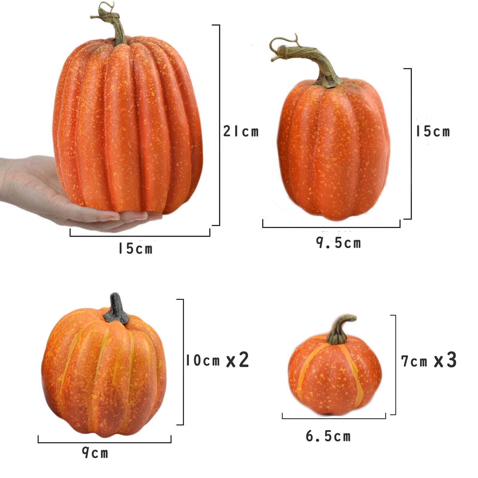 【 お得な7pcsセット 】異なるサイズかぼちゃ(約):高さ21cm*直径15cm*1 重さ:152g / 高さ15cm*直径9.5cm*1 重さ:47g / 高さ10cm*直径9cm*2 重さ:26g / 高さ7cm*直径6.5cm*3 重さ:11g (ご注意:詳しいサイズは写真のように参考してください。モニターの明るさや手動測定によって、色とサイズわずかな誤差があるかもしれません。ご承知ください。)