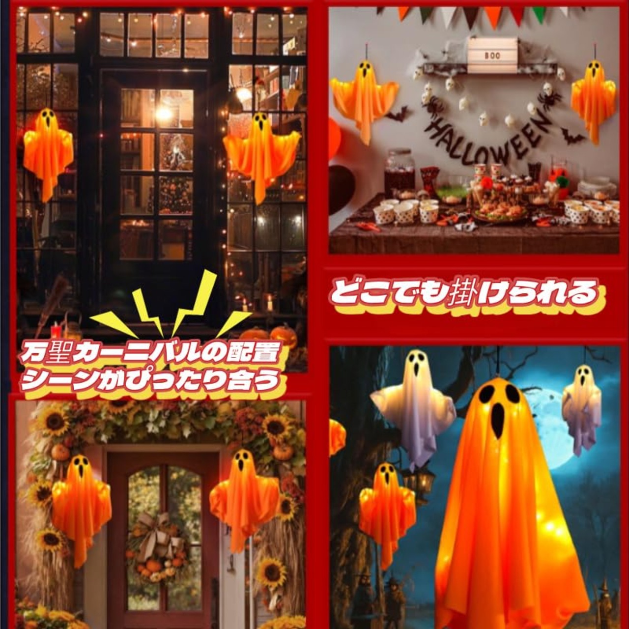 【ハロウィンシャンデリア】簡単で色褪せにくく、庭の素敵なシャンデリアになる幽霊ペンダント。ハロウィン、クリスマス、お正月、お祭り、商店街、テーマパーティー、温室、ホテル、バー、お化け屋敷、ショッピングモールなどの装飾としても大活躍。