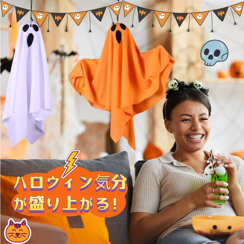 ハロウィン 飾りつけ お化け屋敷 ゴースト ハンギング 雰囲気満点 耐久性 装飾品 多用途 パーティー装飾 置物 道具 お化け 家庭用 文化祭 店舗 飾り スカル 部屋 屋外 インテリア ハロウィンパーティーグッズ (白)