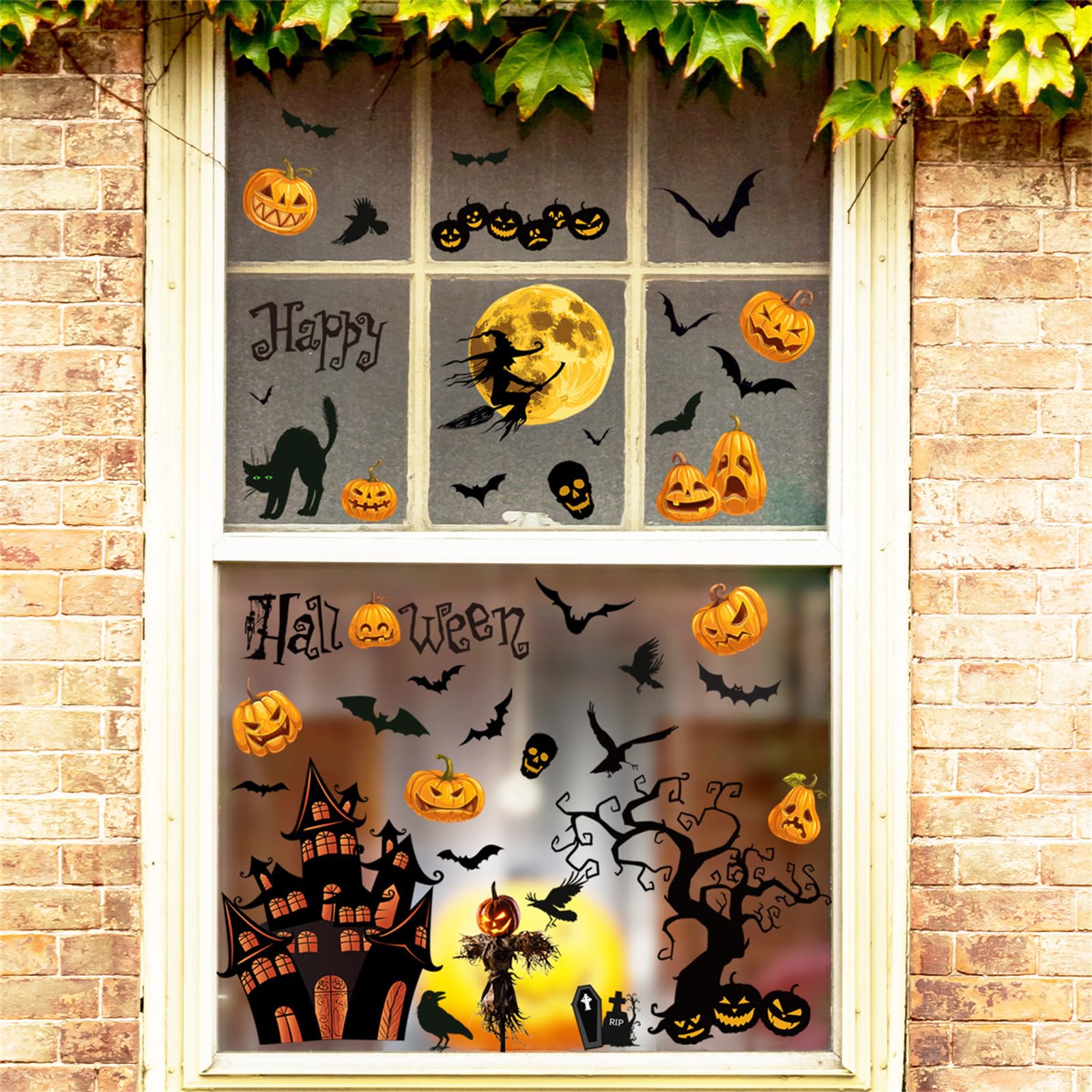 Hikosiya ハロウィン 飾り 静電ステッカー 窓ステッカー カボチャ 幽霊 枯れ木 魔女 Happy Halloween 窓 ドア 戸棚 ガラス 飾り 両面印刷 水で貼る 貼り直し可能 静電気シール インテリア おしゃれ ステッカー DIY PVC素材 生活防水 お化け屋敷 学園祭 バー 仮装パーティー 部屋飾り 店舗飾り Hyst116