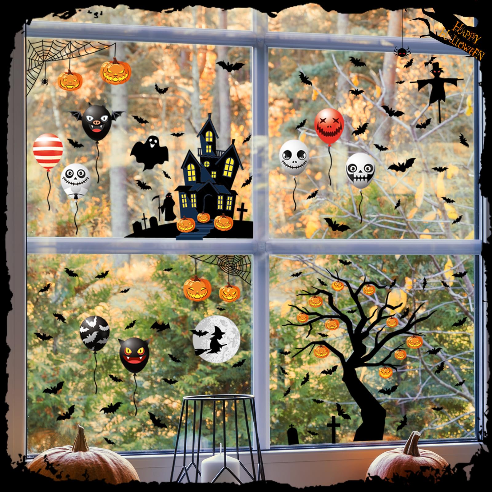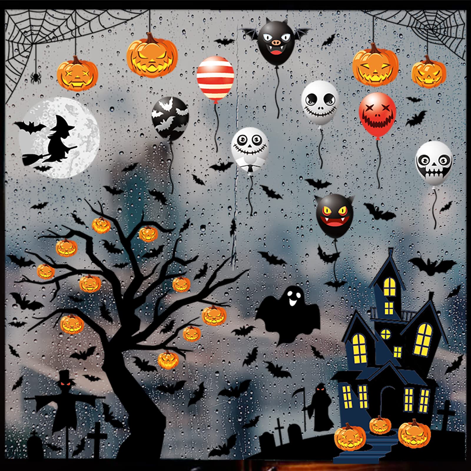 【LEISURE CLUB】ハロウィン ウォールステッカー 静電 窓 ガラス ステッカー シール 109pcs halloween 飾り 剥がせる 装飾 インテリア DIY 部屋 店舗 デコレーション (HW076-1)