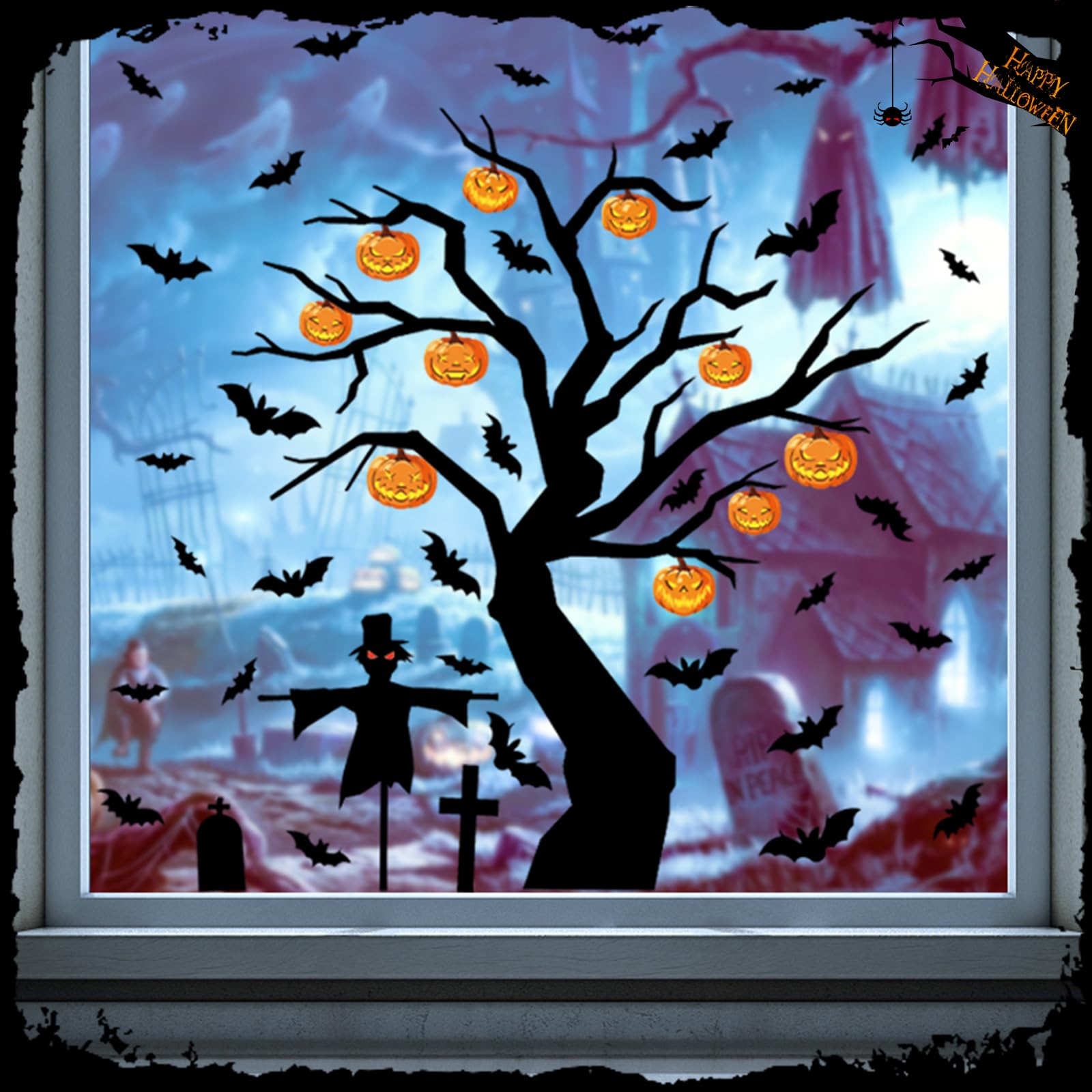【適用場所】部屋、店舗の窓、冷蔵庫、滑らかな壁面に適用します。貼り付けが簡単、賃貸部屋も大丈夫です。貼れば、ハロウィンの雰囲気を盛り上げてくれます。