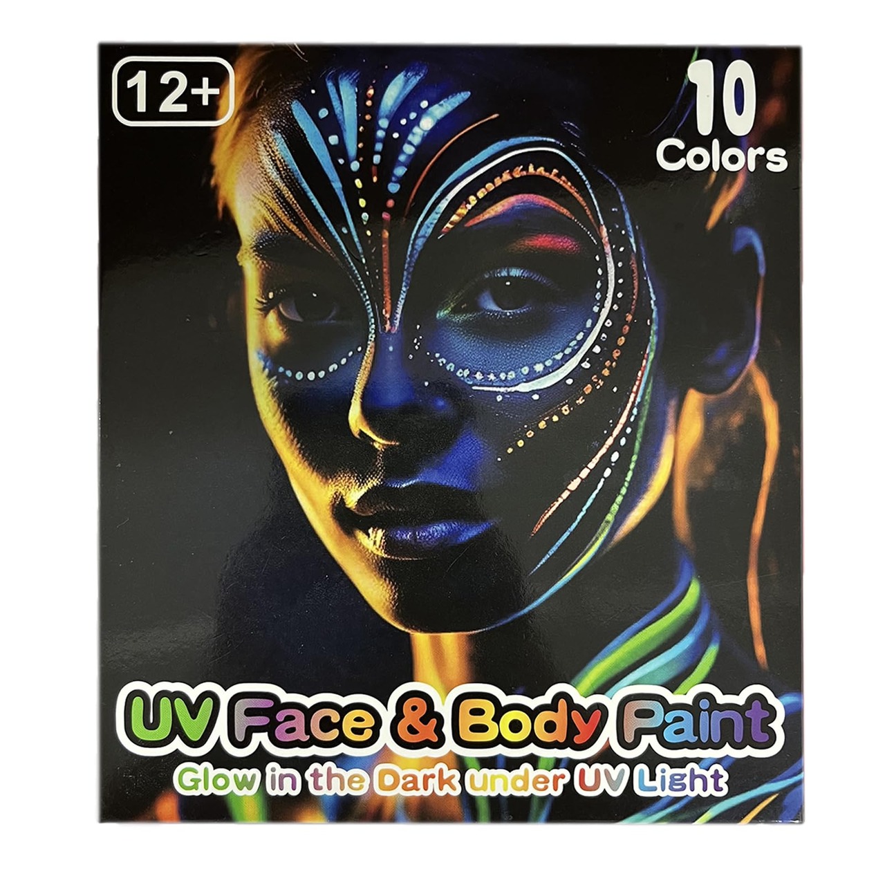 【新春セール】暗闇で光る 10 色の紫外線表面ペンキのマーカー、黒いライトの下の洗濯できるネオン表面ボディ絵画のキット、ハロウィンの化粧の白熱党供給、混乱なしのための一時的な入れ墨のペン | asaRulu0511