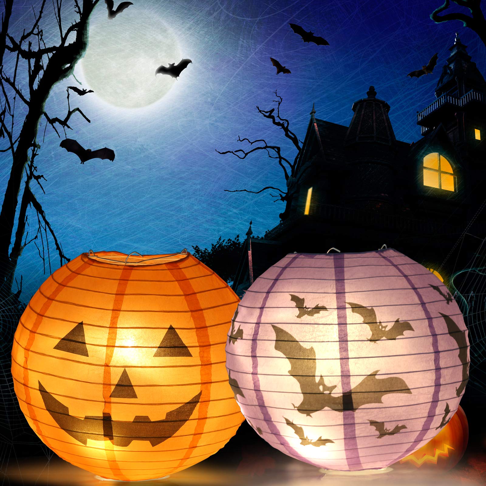 Kesote ハロウィン 飾り 提灯 カボチャちょうちん コウモリちょうちん ランタン 和紙提灯 折り畳み式ちょうちん 直径25㎝ 10個入り オレンジ パープル 5個各色 お祭り パーティーに