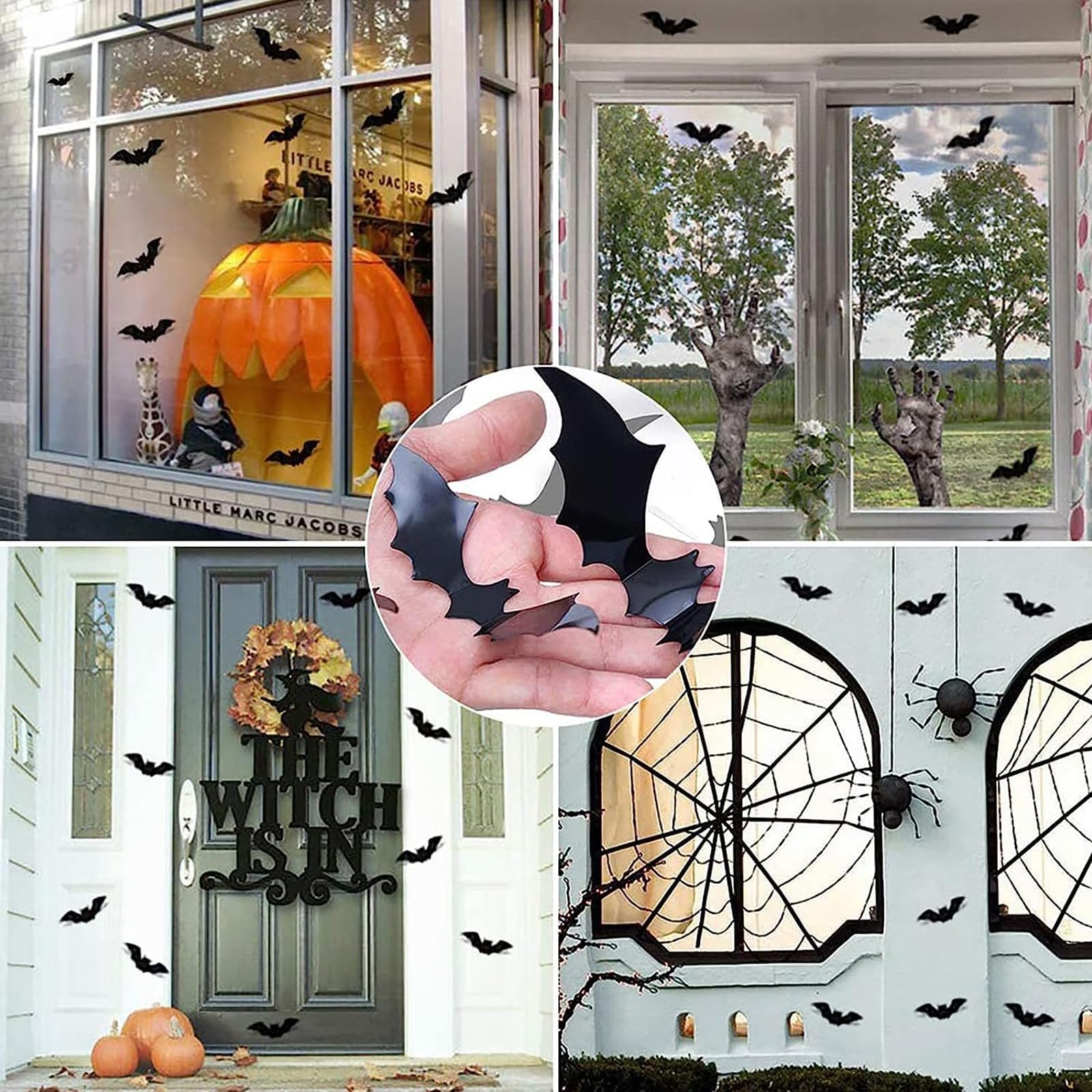 【LEISURE CLUB】ハロウィン 飾り LED コウモリ ステッカー 3D ハロウィン ウォールステッカー 12枚セット 6種類のサイズ 防水 PVC製 取り外し可能 インテリア DIY 窓飾り お部屋 学園祭 (12枚セット)