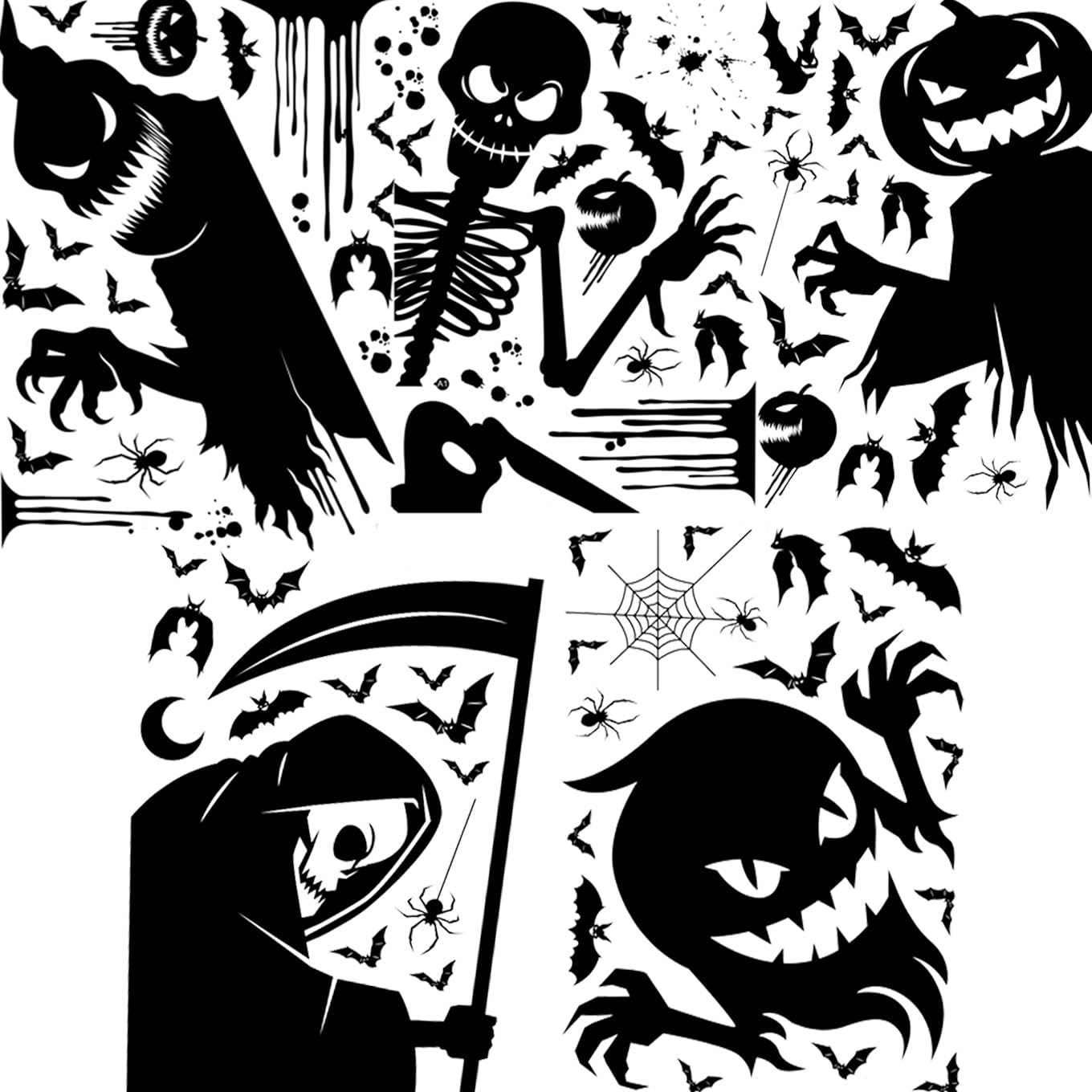 ZEZYXUFM 5枚78pc ハロウィン 飾り 静電ステッカー 特大 防水 両面 デコレーション 静電吸着 剥がせる 汚れない ウィンドウ クリング スケルトン怪、死神、パンプキン幽霊、巨口怪物、コウモリ、スパイダー ウィンドウ ステッカー 部屋 装飾品 窓ステッカー 学校 バー 店 パーティー装飾