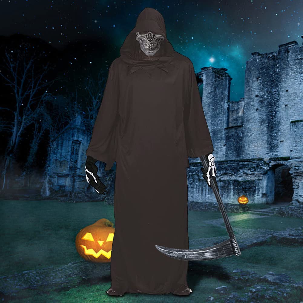 [Formemory] 死神 コスプレ マント コスチューム 死神コス マスク 鎌 ハロウィン 仮装 小道具 かま 骸骨 お面 ホラー セット コスチュームセット お化け 屋敷 衣装 大人用 男女兼用 肝試し