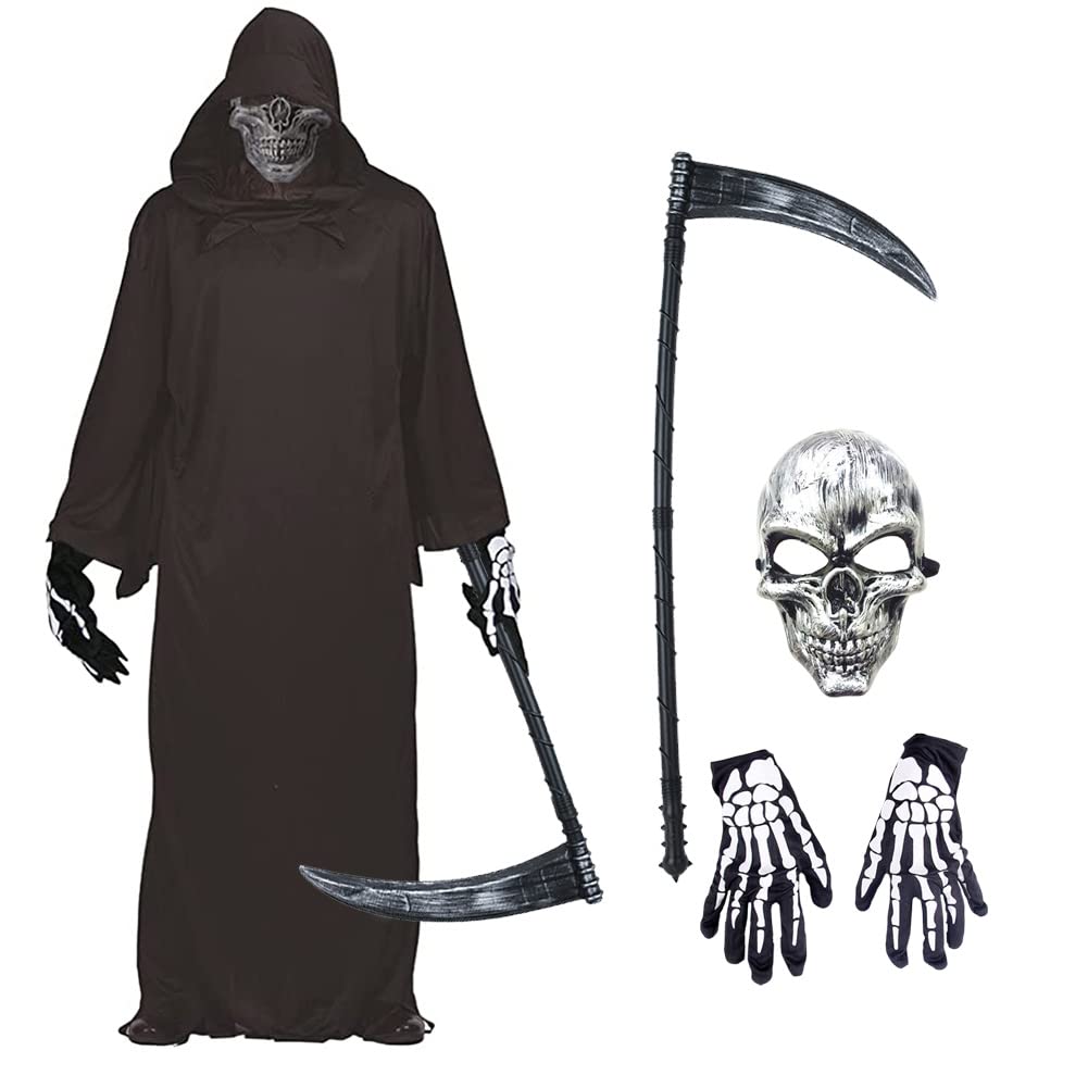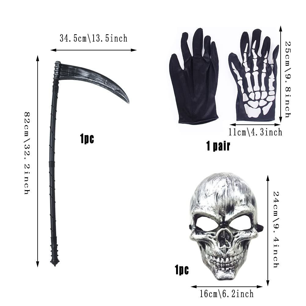 【特価セール】[Formemory] 死神 コスプレ マント コスチューム 死神コス マスク 鎌 ハロウィン 仮装 小道具 かま 骸骨 お面 ホラー セット コスチュームセット お化け 屋敷 衣装 大人用 男女兼用 肝試し | asaRulu0511