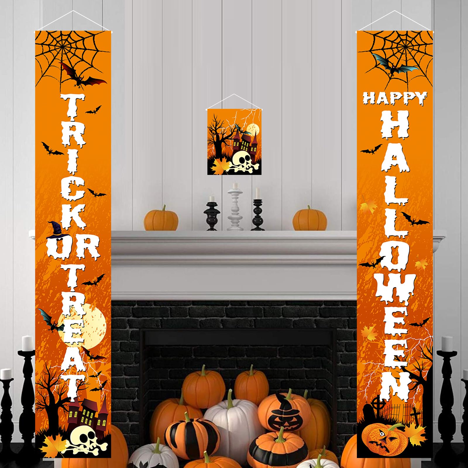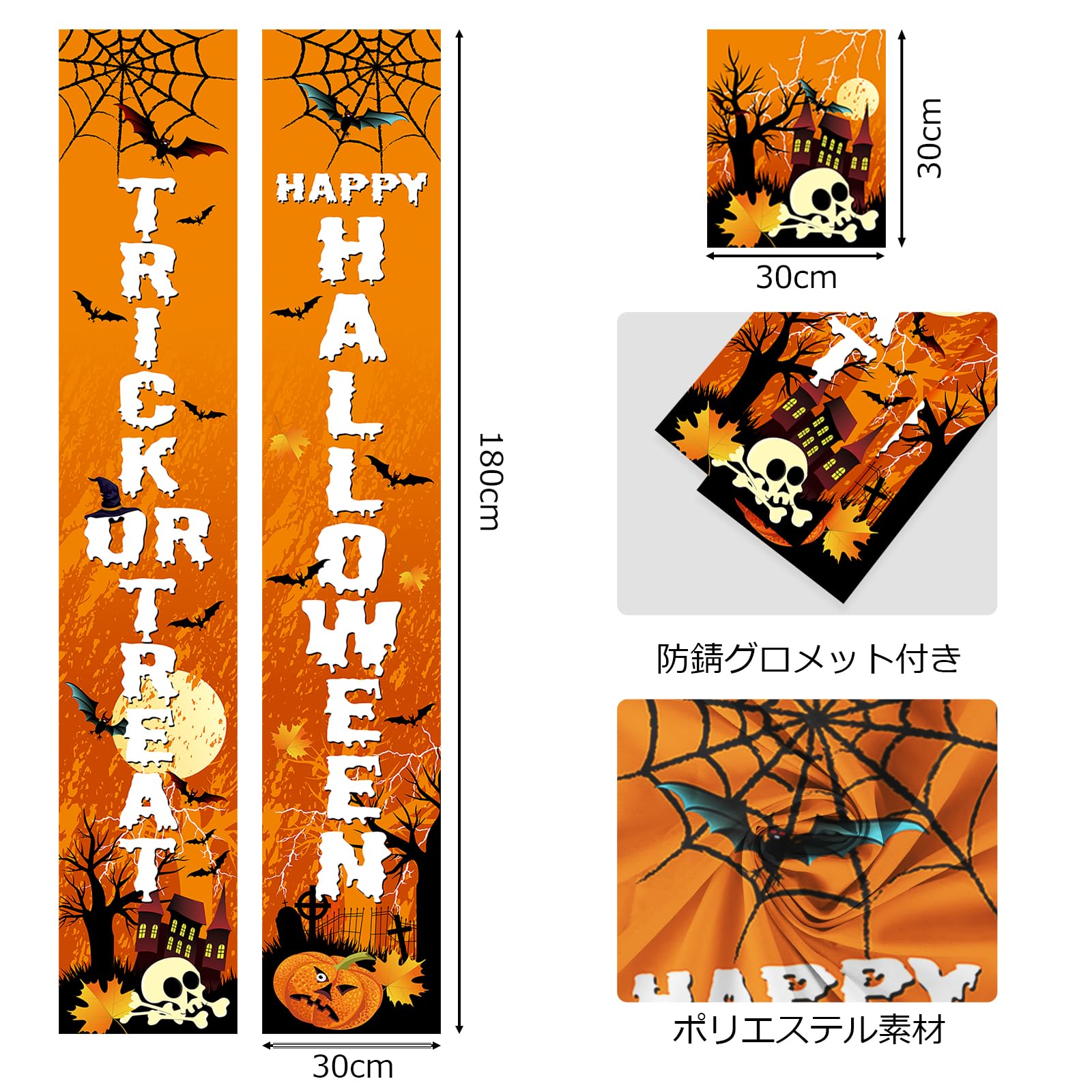Paready ハロウィン タペストリー 壁掛け おしゃれ 飾り付け 玄関 飾り 背景 デコレーション 装飾 Happy Halloween パーティー ハロウィングッズ 窓 壁 部屋 インテリア かぼちゃ オレンジ 30*180cm