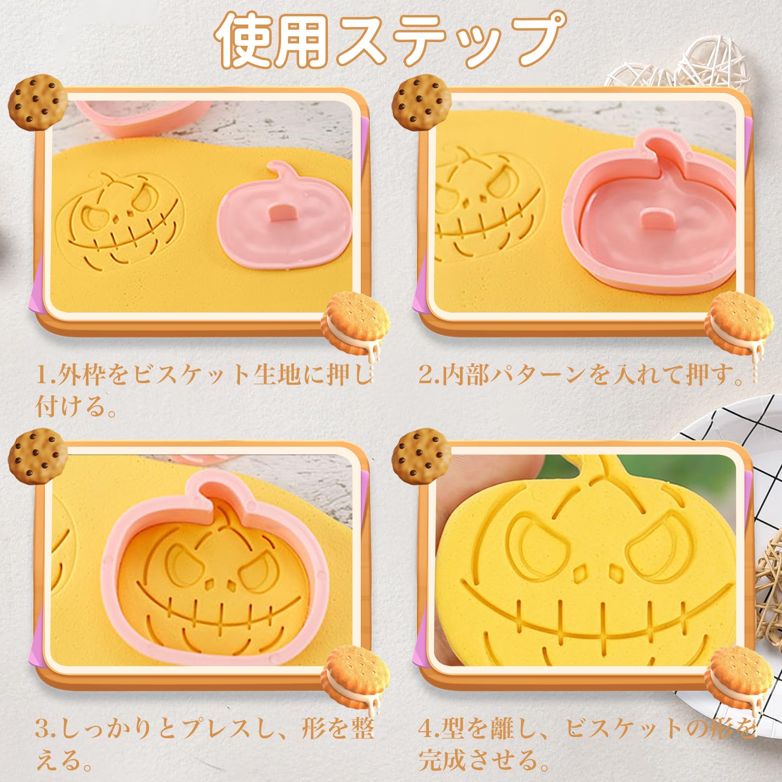 【ハロウィン クッキー型】クッキー型は、ファッジ、チョコレートビスケット、チーズ、パンケーキなどのおいしいお菓子を作るのに理想的です。クッキー型を使用した後、食品はより魅力的で繊細でコンパクトに見えるようになります。操作が簡単で、型抜きも簡単なので、いろいろな種類のおいしいお菓子が簡単に作れます。