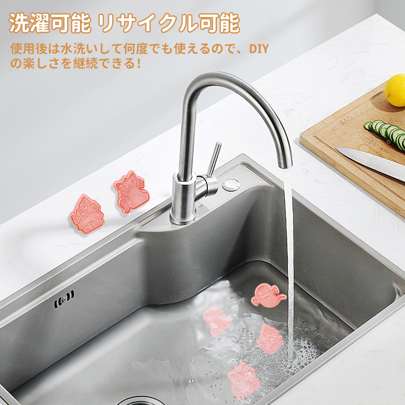 【お手入れ簡単】クッキー型は手洗いできます。使用後、クッキー型を水に入れて優しく洗えば、残った汚れも洗い流せます。時間をおいて洗えば清潔に保てるので、長期間の汚れによるカビなどの心配がなく、リサイクルできます。多機能で、長年使用でき、長期的な価値がある必須のキッチングッズです。