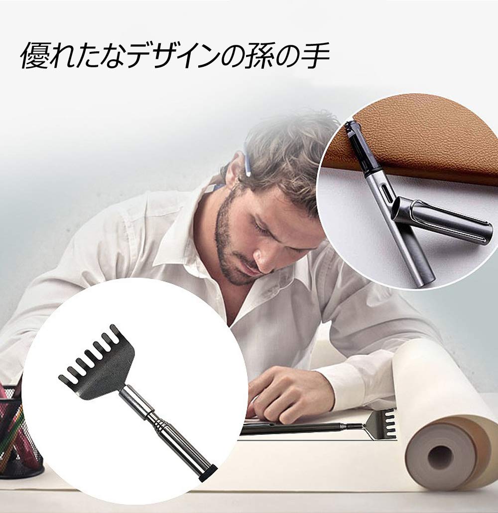 孫の手 伸縮自在 携帯 ステンレス製 背中かき棒 バックスクラッチャー 長さ調節(約):20~68cm (2個入り) (2個入)