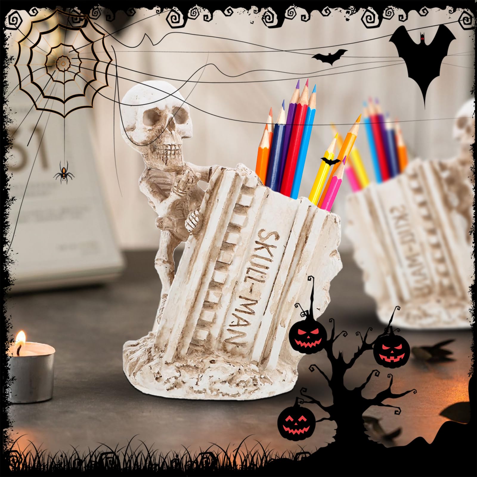 LEISURE CLUB ハロウィン 置物 ペン立て ペン差し 飾り 卓上 装飾 おしゃれ ハロウィン ガイコツのオブジェ 樹脂製 飾り付け (ガイコツ-A)