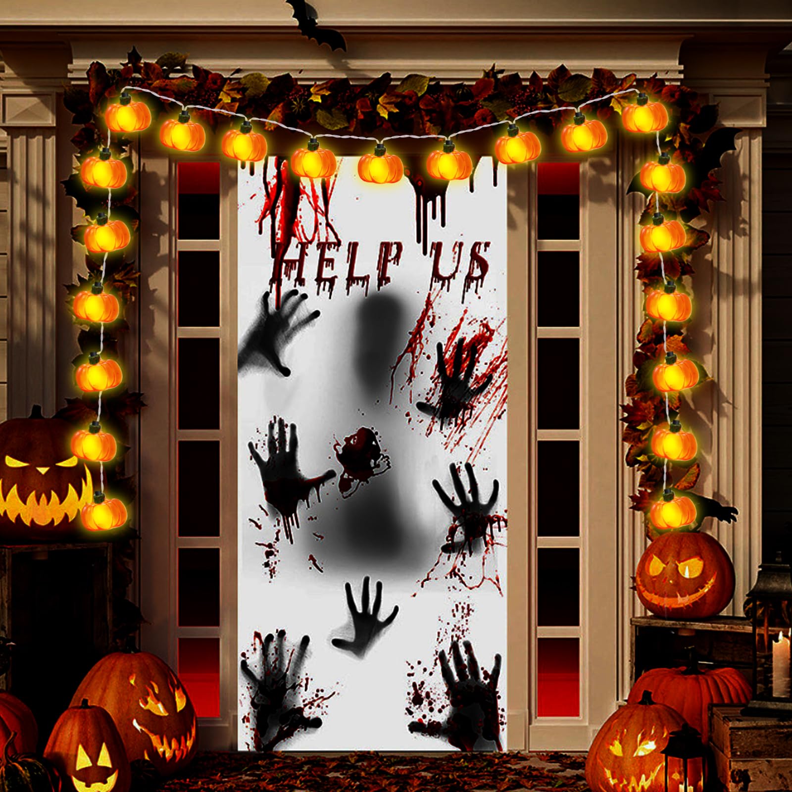 【高品質素材】ハロウィンライトシェルは高品質のPVC素材で作られており、耐久性があり、壊れにくく、繰り返し使用できます。屋外ポーチスペースに完璧なお祭りの雰囲気を添えます。