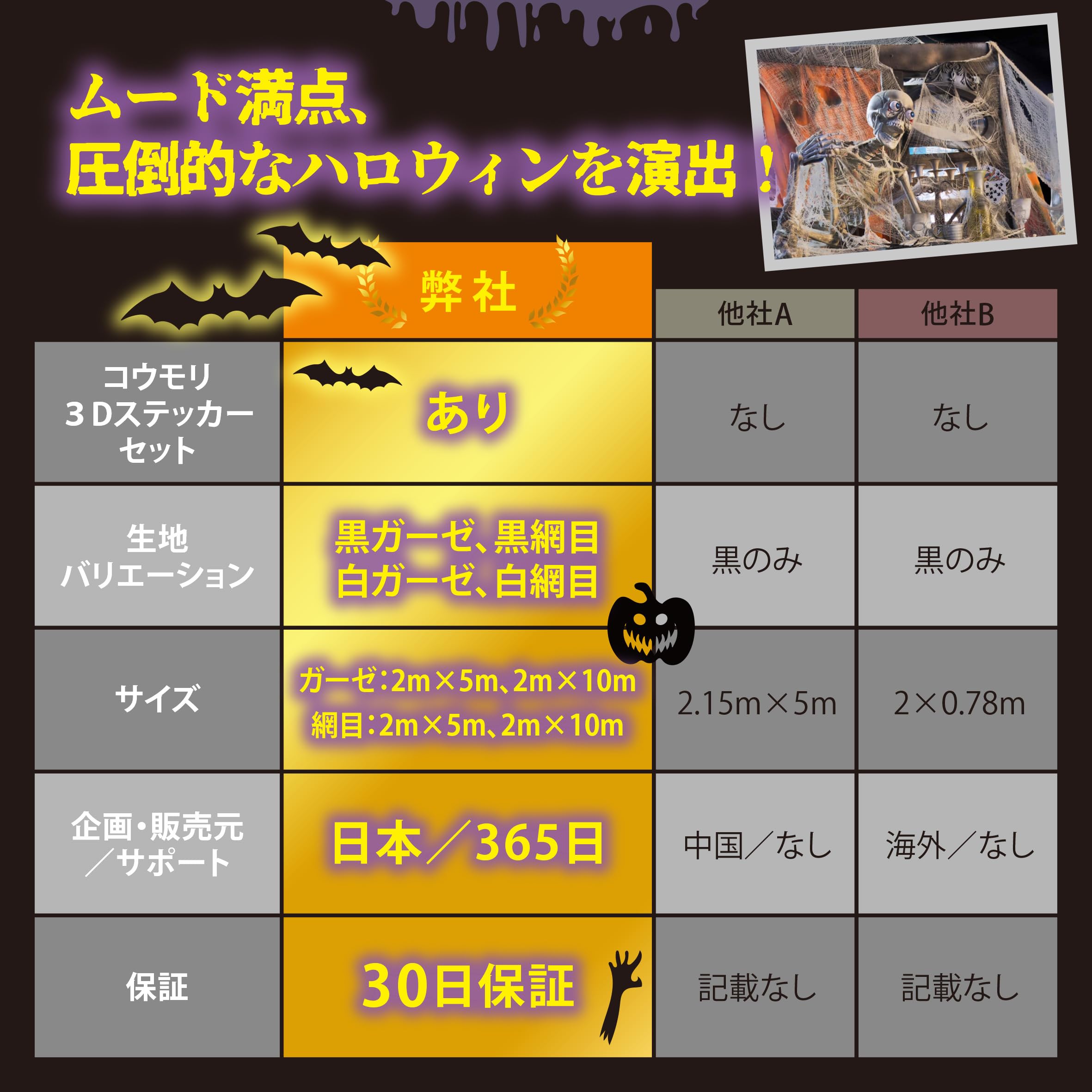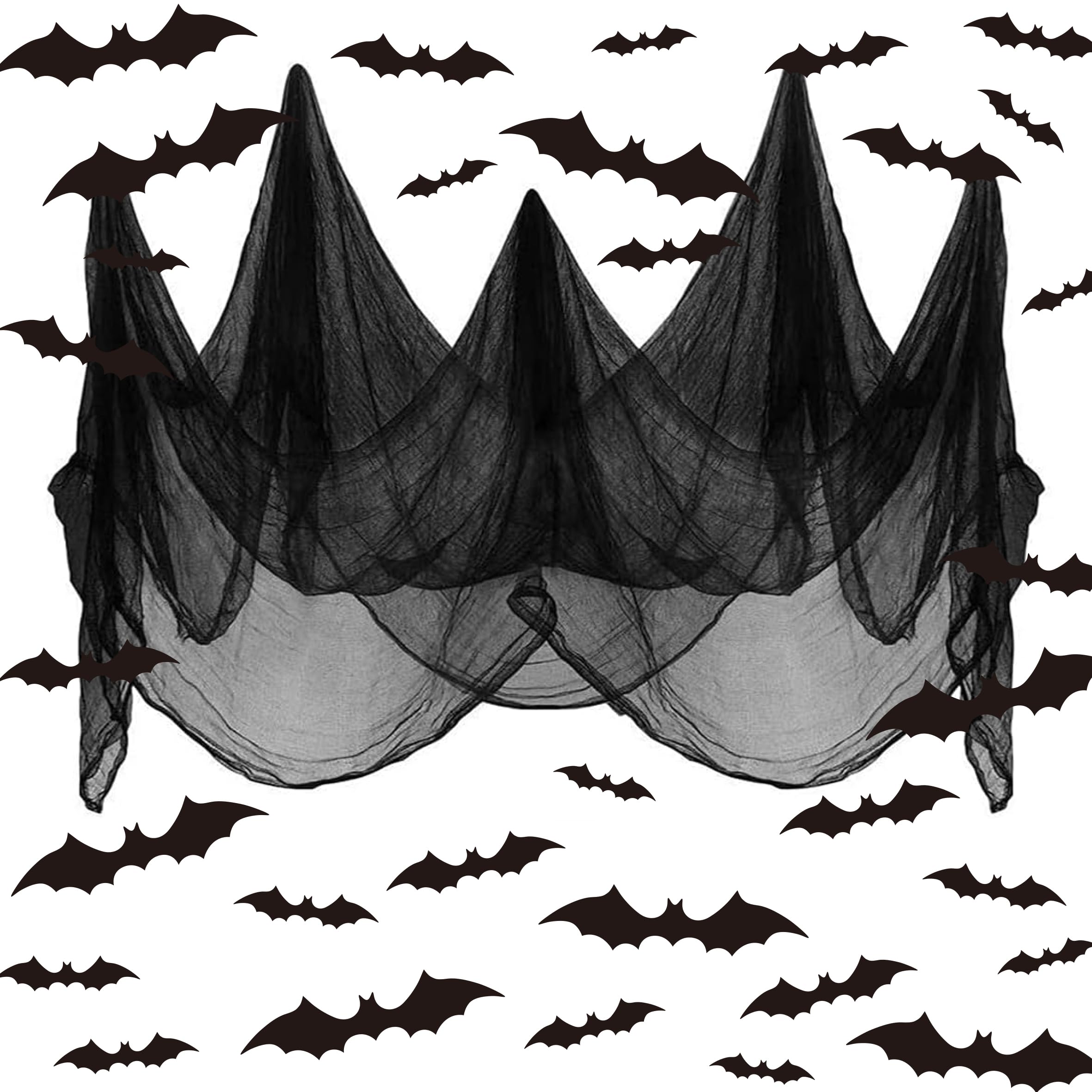 【セット内容】 黒ガーゼネット(2.15M×5M)、コウモリ3Dステッカー28匹