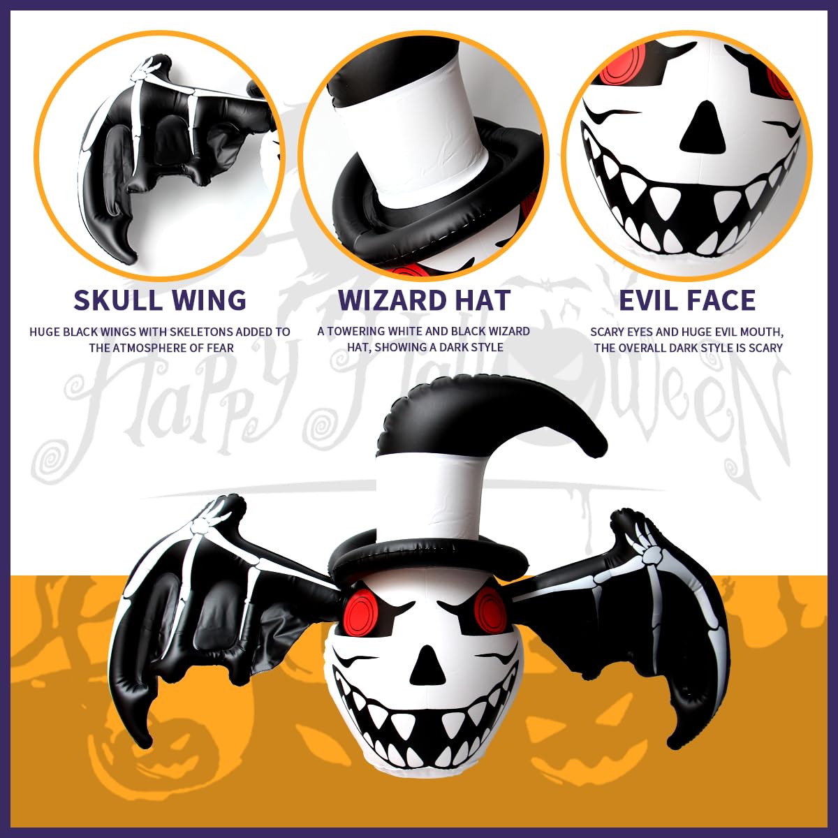 多目的: 膨らませるハロウィーンの頭蓋骨のゴーストは、ハロウィーンの装飾だけでなく、テーマパーティー、誕生日、会議などを開催したい人にも最適です。PVC素材のため、リビングルーム、バルコニー、ビーチ、湖畔など、屋内でも屋外でも使用できます。