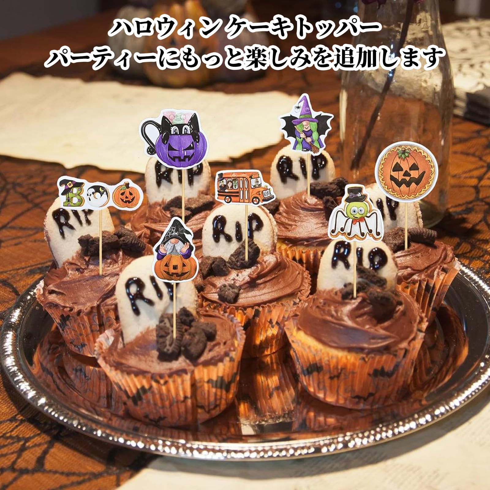 【新着商品】Coollooda ハロウィン ケーキトッパー (28個セット) カップケーキトッパー ケーキ飾り ケーキ挿入カード かぼちゃ お菓子/果物/カップケーキ用