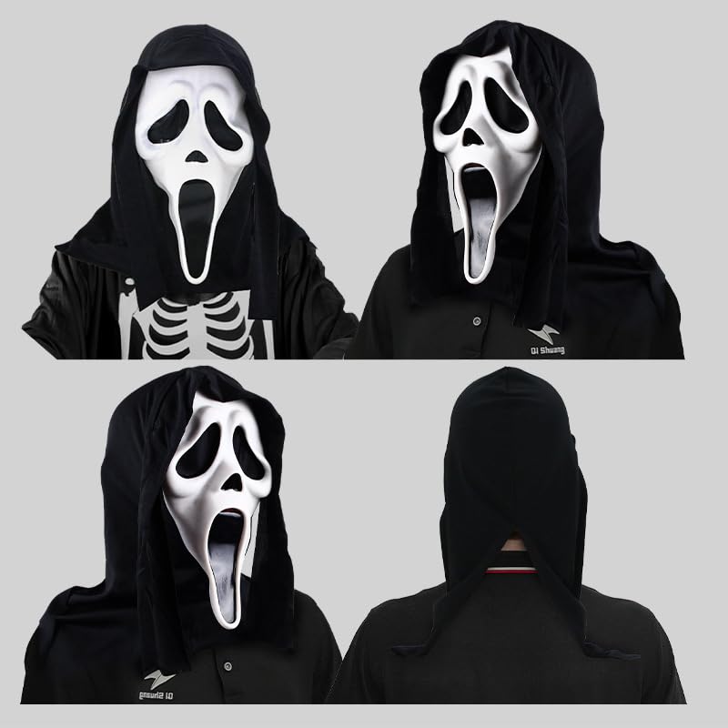 ゴーストフェイス 怖い マスク コスプレ コスチューム マスク ハロウィン 恐怖のスクリームマスクとブラック ハロウィーン パーティー怖いマスク スクリーム スカル ゴースト マスク フェイク フェイス マスク 用 大人 子供(ホワイト)